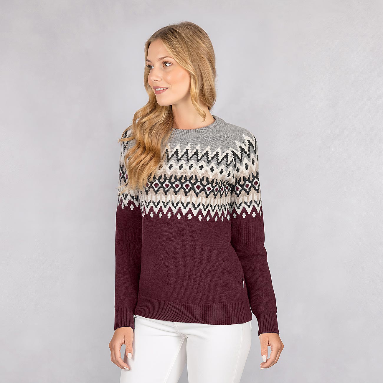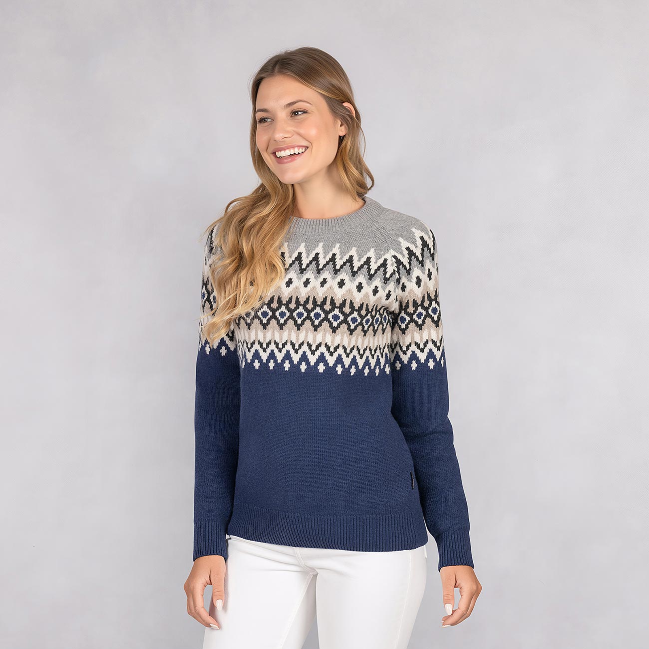 Fein, festlich und schön in Form gestrickt ist der elegante Merino-Lambswool-Pullover mit Jacquard-Muster aus dem Hause GIESSWEIN. Die zarten Woll-Fasern schmiegen sich kuschelig und weich an die Silhouette an und erzeugen wohlige Wärme. Die Raglan-Ärmel umschließen mit idealer Schnittführung die Schultern bis zum Hals, die tonalen Nähte perfektionieren die Figur-umschmeichelnde Optik. Der Rippstrick an Rund-Hals, Hüfte und Ärmeln schließt den Norweger-Pullover optimal ab und garantiert perfekte Temperierung mit atmungsaktiver Merinowolle. Das edle GIESSWEIN Leder-Patch am linken Ärmel unterstreicht die Hochwertigkeit des Nordic Sweaters aus unserer Strickmanufaktur. Der edle Lammwoll-Pullover mit nordischem Look lässt sich elegant zu Rock und Hose, sportlich zur Jeans oder chic zum Après-Ski kombinieren.