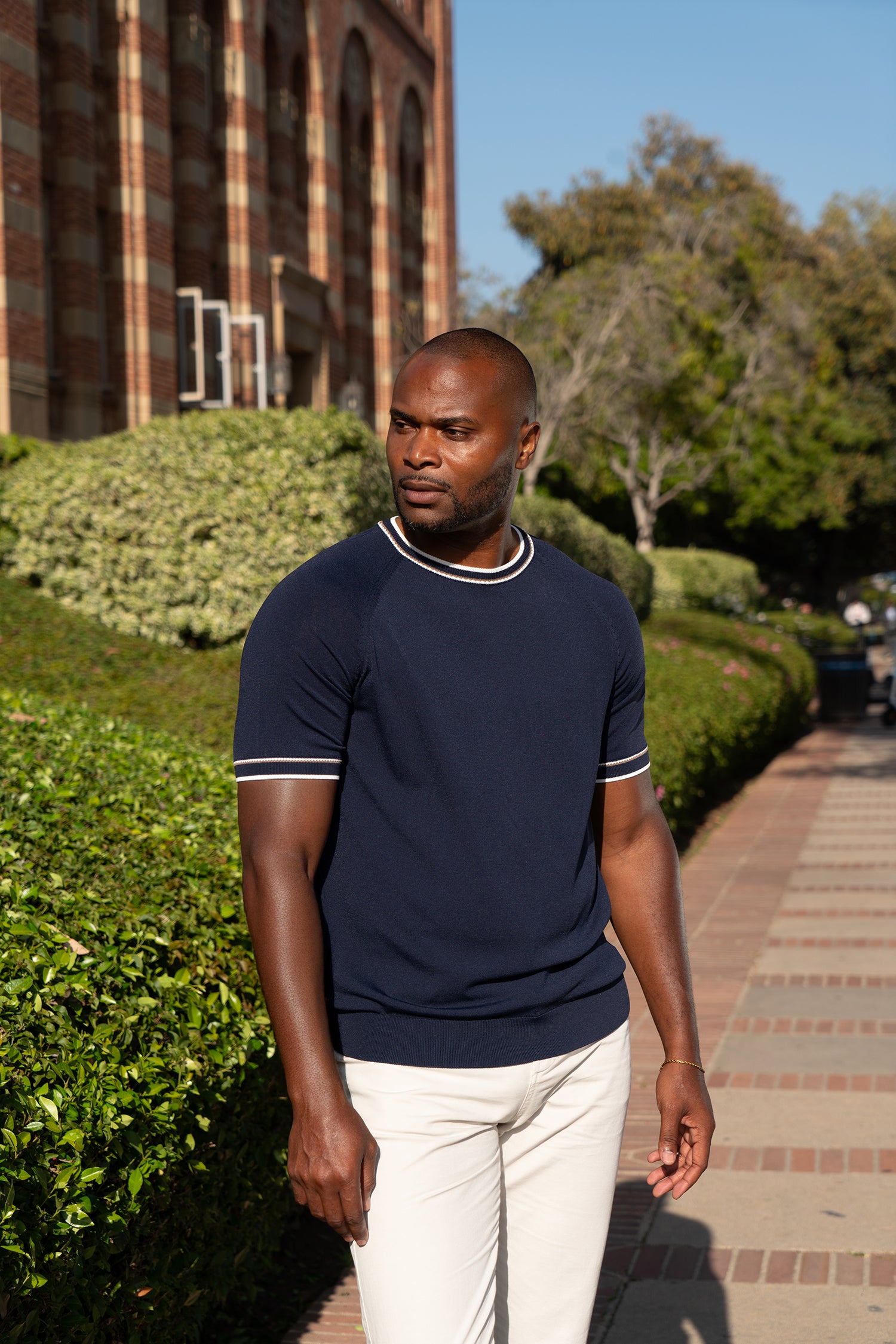 A modern twist on a classic staple, the Contrast Trim Short Sleeve Sweater offers a refined yet effortless look. Designed with a lightweight knit and raglan-style sleeves, it delivers comfort and breathability while maintaining a polished aesthetic. The contrast ribbed trim adds a subtle pop of color, making it a versatile piece for any wardrobe.