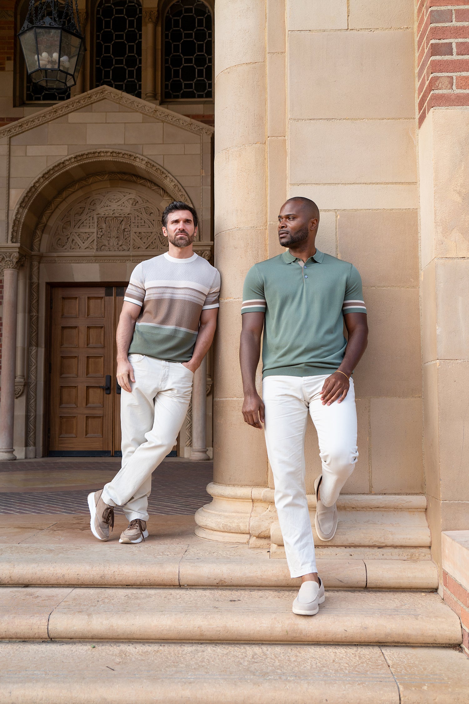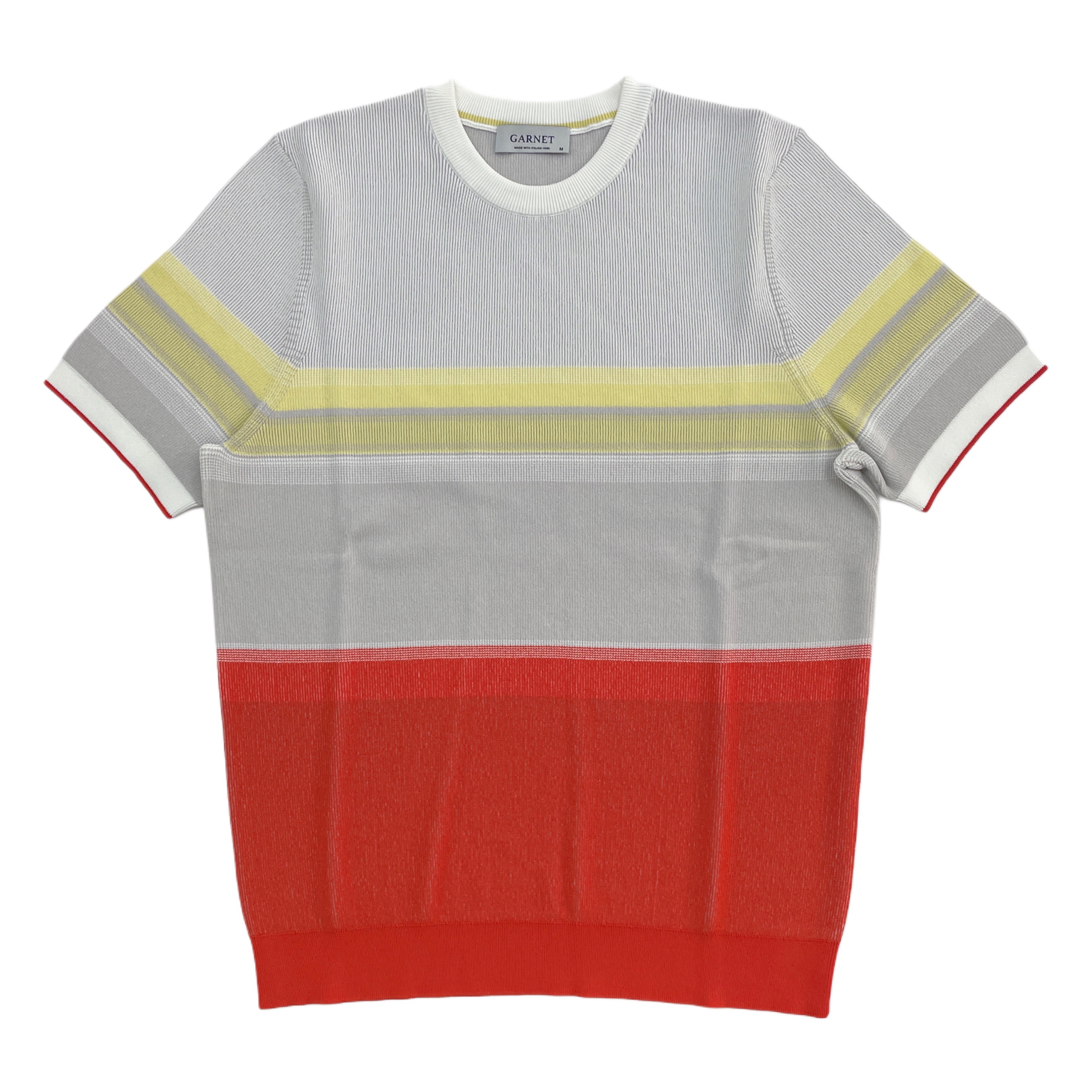 Make a statement with the Gradient Stripe Knit Tee, designed for both style and comfort. Featuring a bold multi-tone stripe pattern and a soft, breathable knit, this short-sleeve sweater is perfect for effortless layering or standalone wear. The ribbed collar and cuffs add a refined touch, making it a versatile wardrobe essential.
