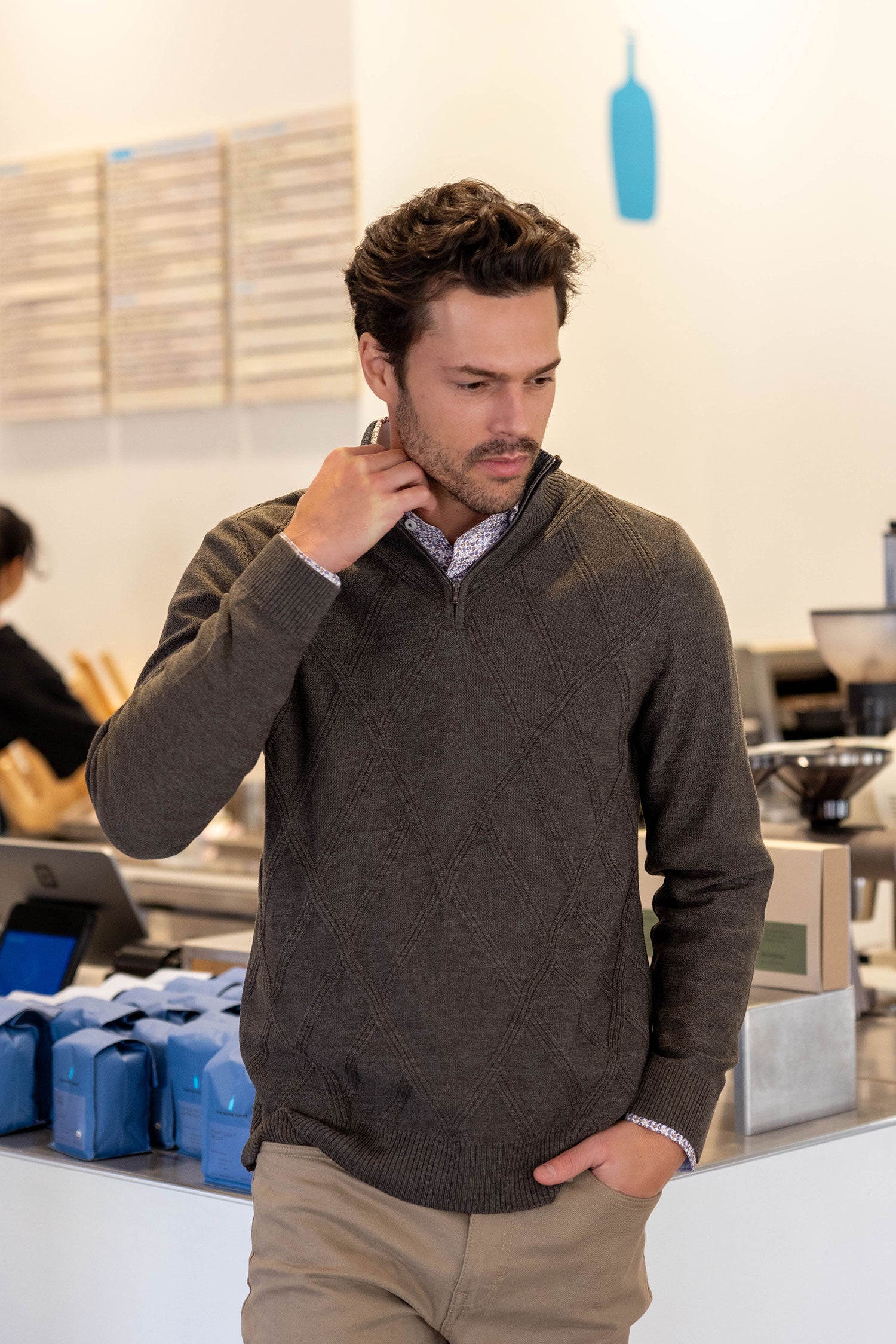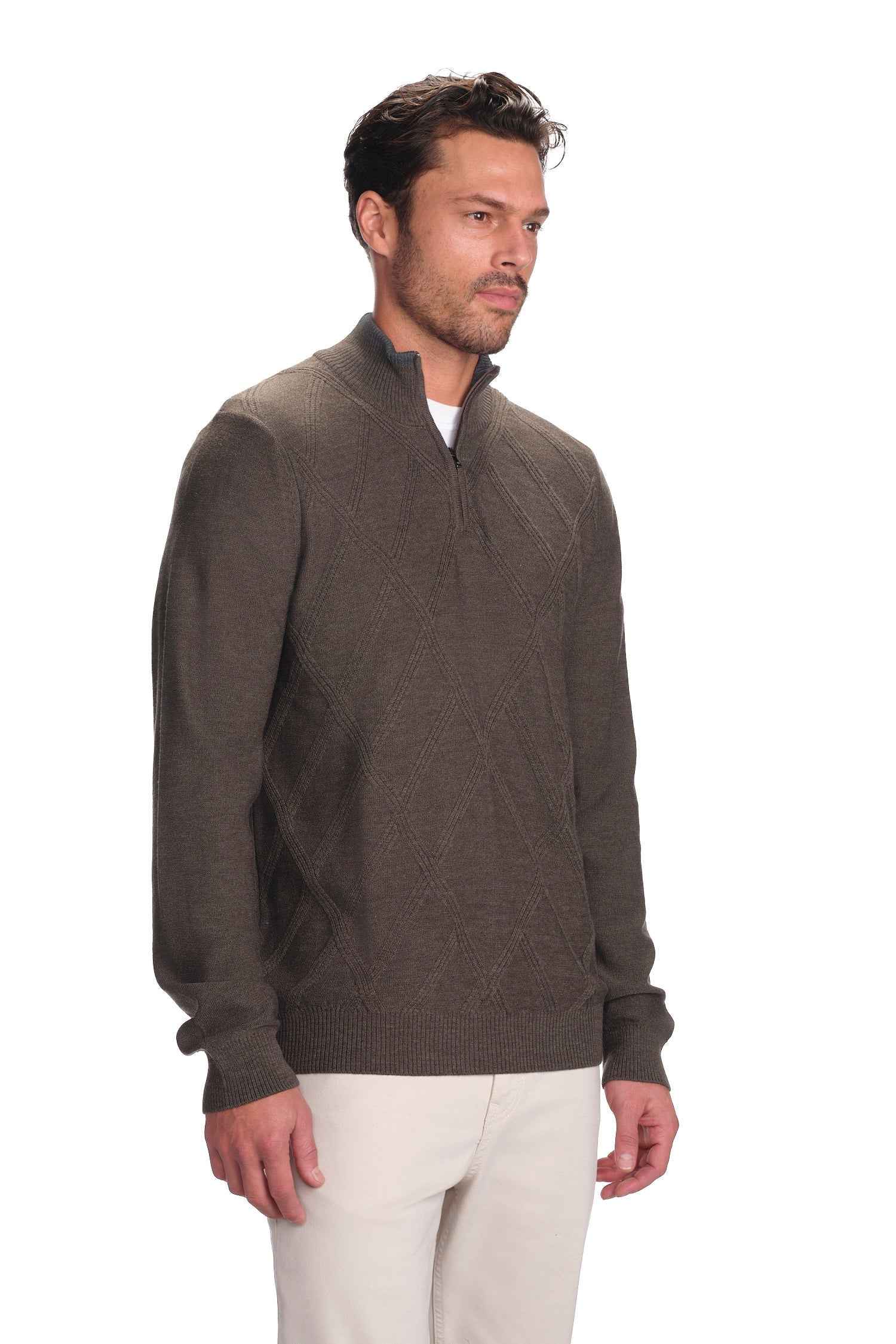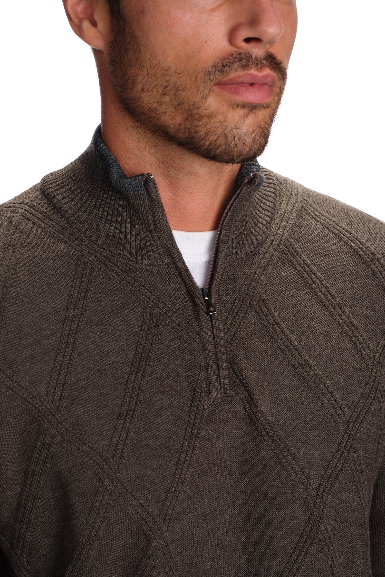 Elevate your wardrobe with our garnet-hued Merino wool sweater. Crafted to perfection with a quarter zip design, intricate diamond pattern, and breathable fabric, it's a symbol of sophistication and luxury. Machine washable for convenience, this durable piece is perfect for any occasion.