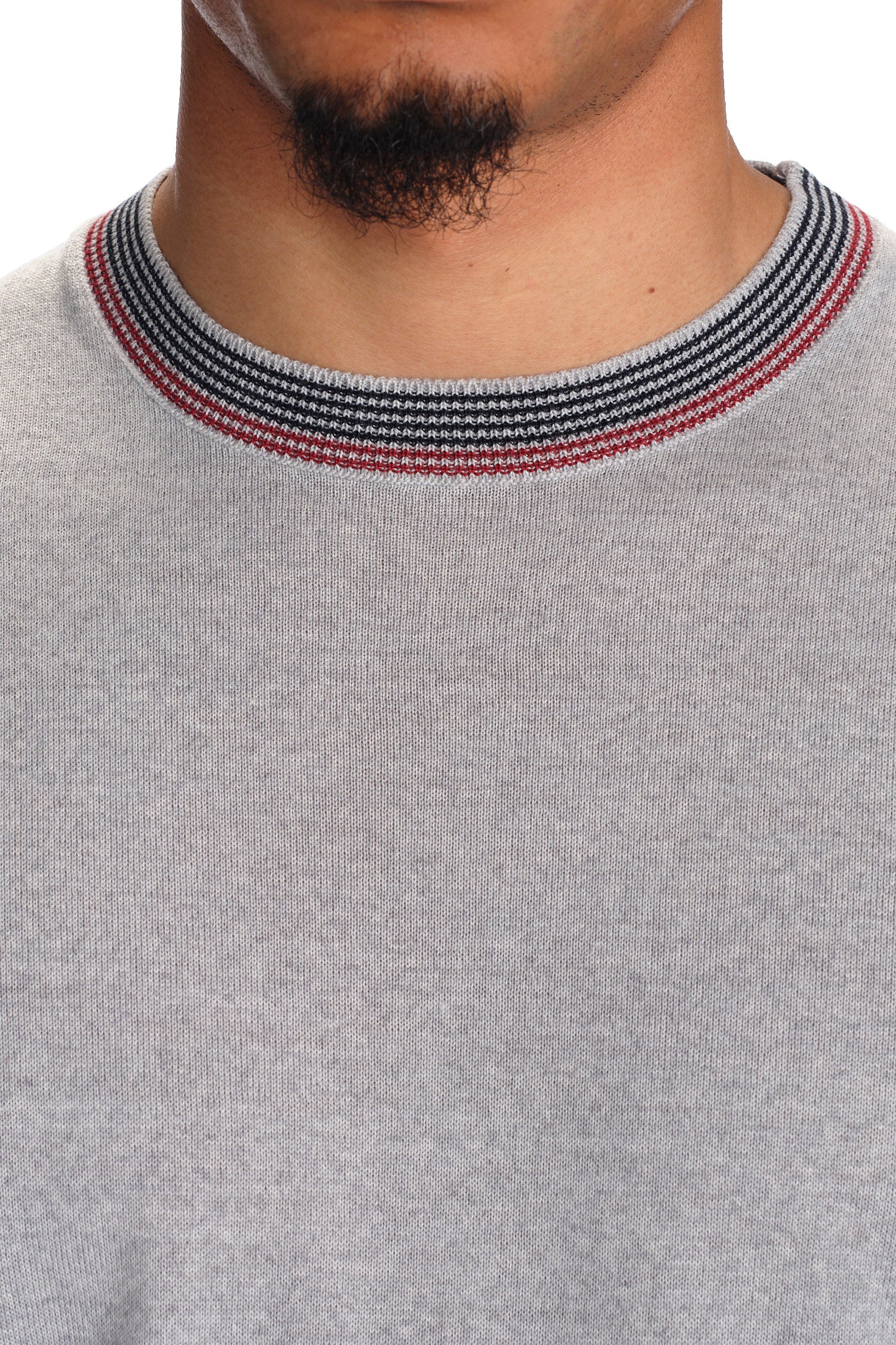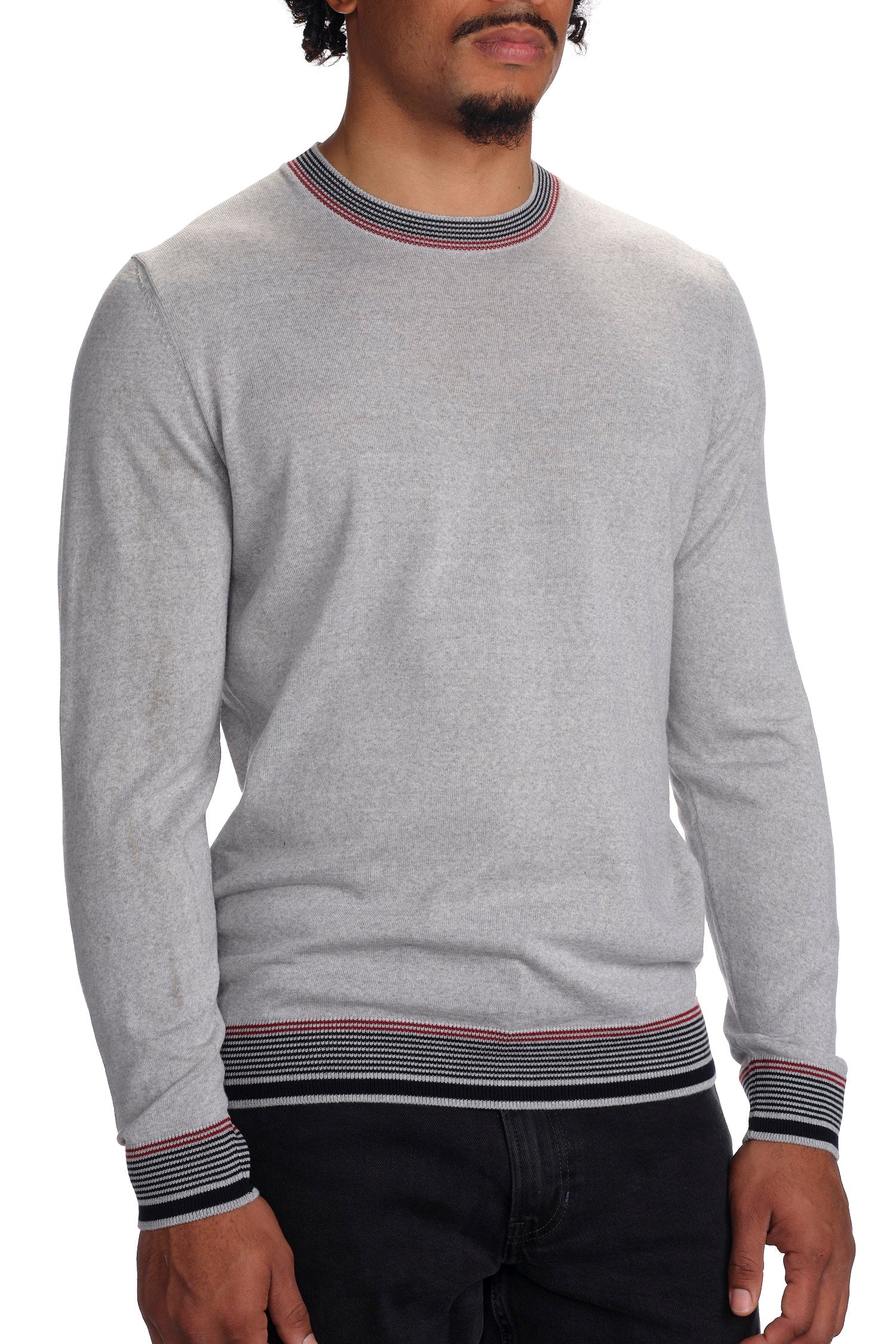 Indulge in the luxury of 100% Merino wool with this impeccably crafted Crew Neck Sweater. Its durability and softness are unparalleled, while the contrasting lines on the collar, cuffs, and hem add sleek detail. Expertly knit for breathability, this sweater can be easily cared for in the washing machine. Experience style and comfort with this elevated piece.
