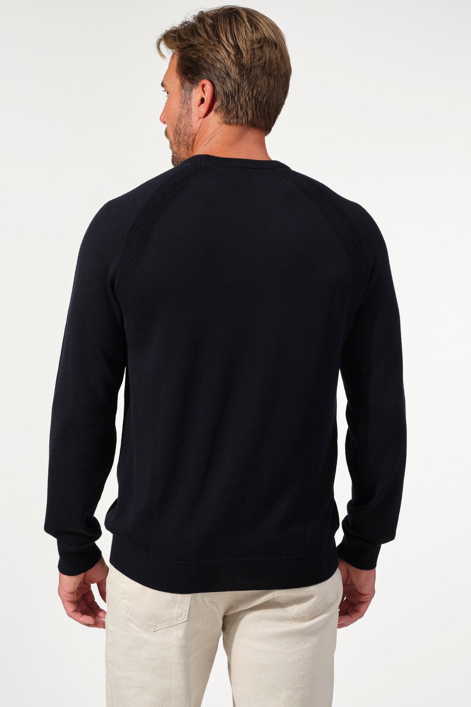 Crafted from 100% Merino wool and made with Italian yarn, the Milano Sweater brings together refined structure and effortless softness. The contrast ribbed neckline and signature “V” stitch detail at the collar add an athletic edge to its classic silhouette. Lightweight, breathable, and naturally insulating, it’s a go-to layer for cooler days or elevated casual looks.