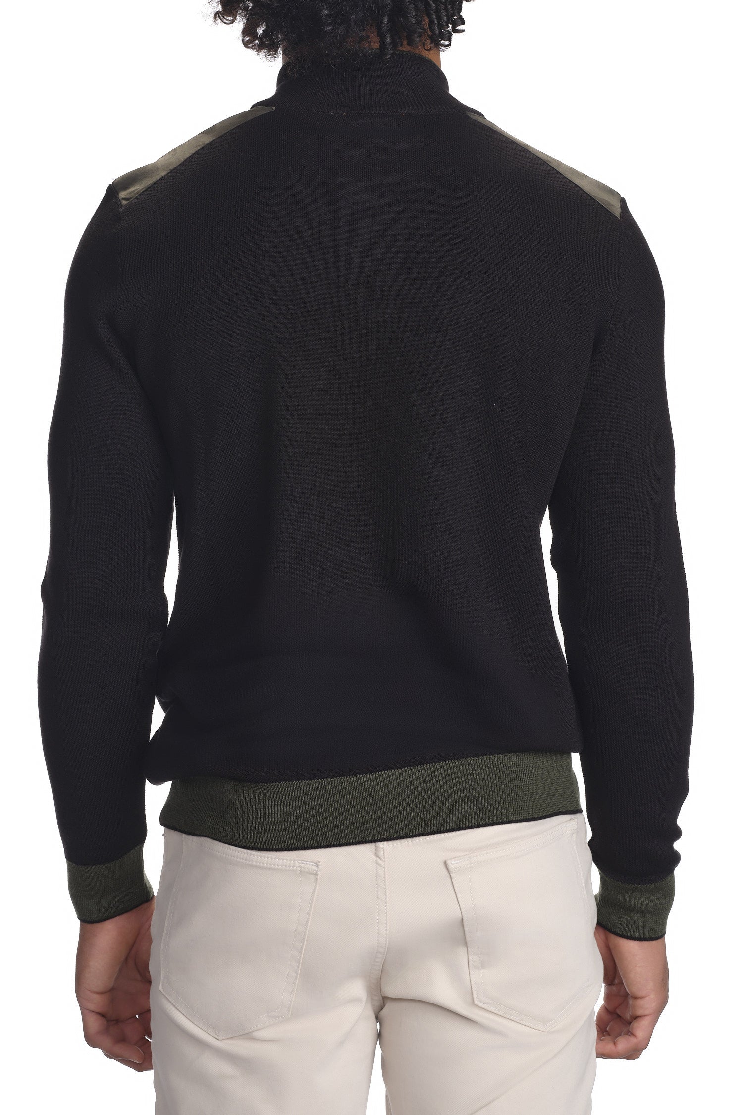 Indulge in luxurious comfort with our 100% Merino Wool Sweater featuring elegant Suede Detail, beautifully contrasted ribbed cuffs and hem. The durable stand collar adds a touch of sophistication while the knit quarter zip closure allows for easy wear. Stay effortlessly stylish and comfortable with this breathable piece, conveniently machine washable.