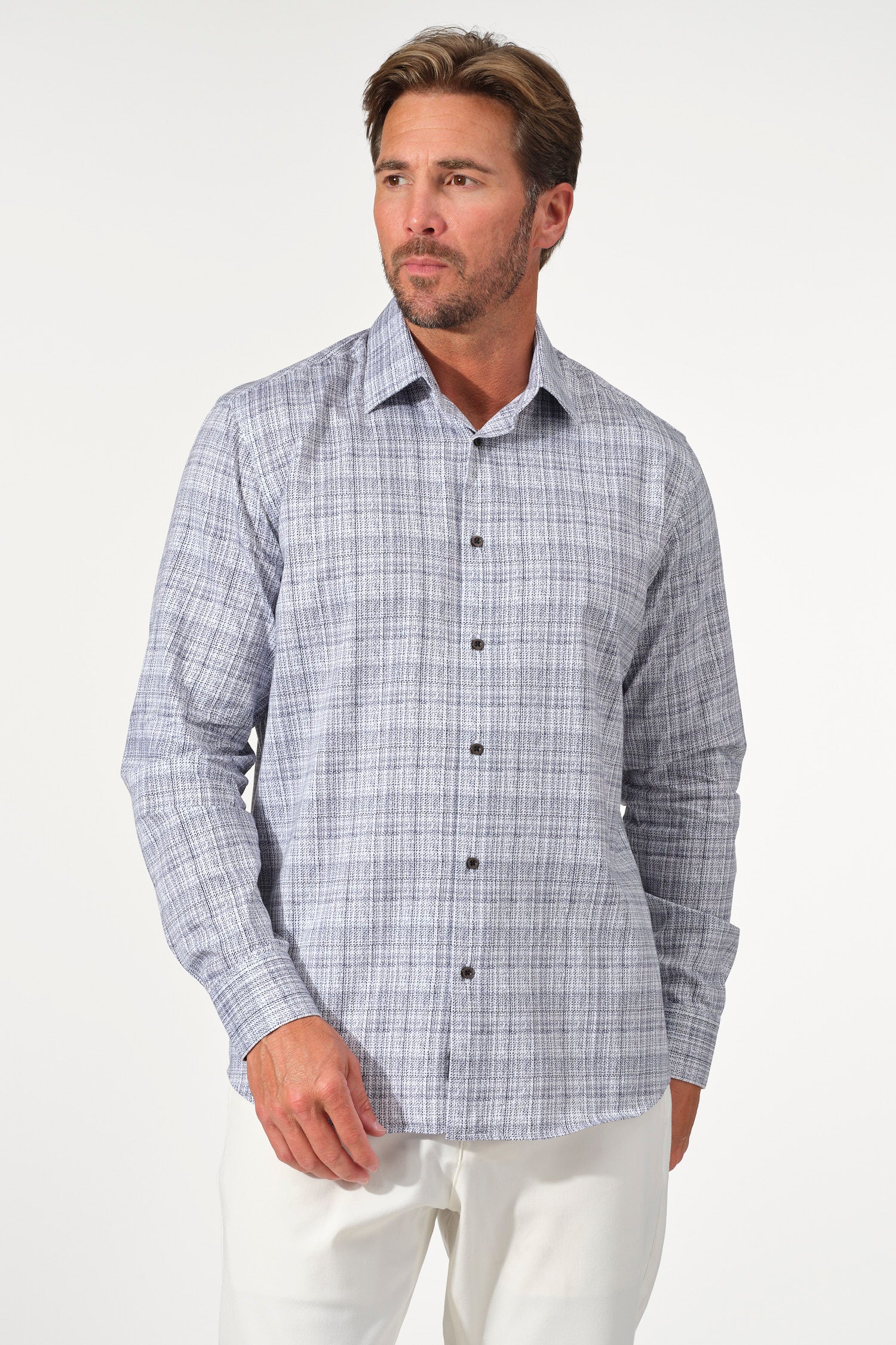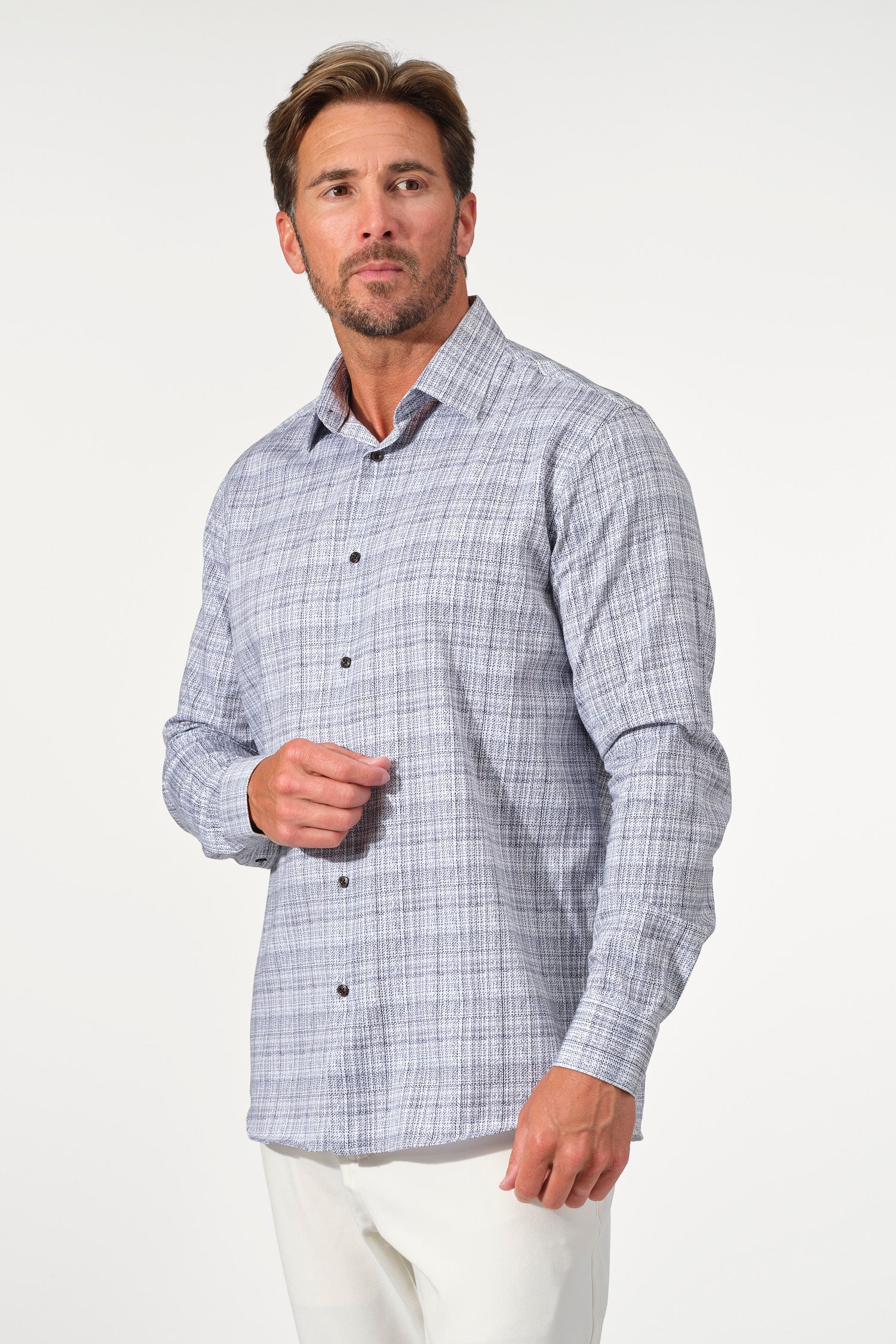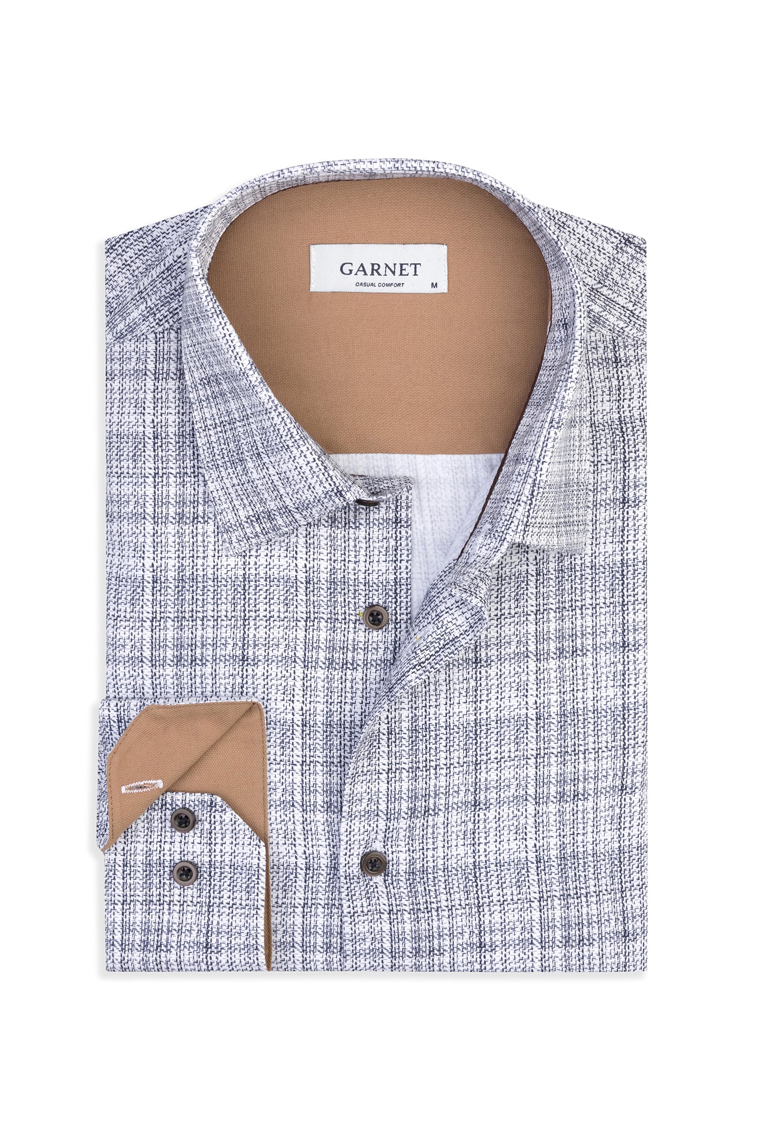 Add a dynamic edge to your wardrobe with this Brushstroke Print Shirt, featuring an abstract pattern in soft neutrals and cool blue tones. Made from a breathable cotton blend with a hint of stretch, it’s tailored for all-day comfort with modern flair.