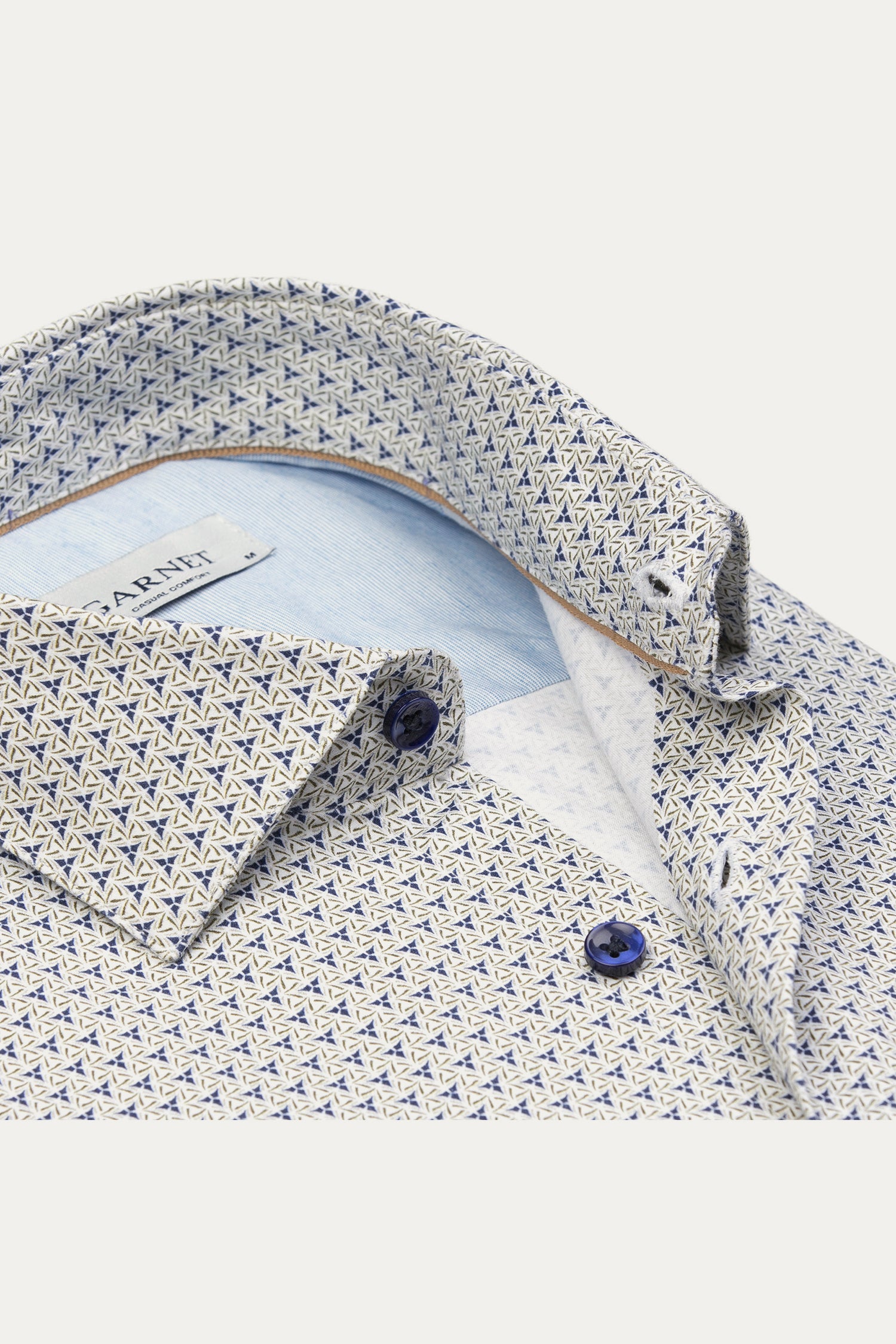 Designed for effortless sophistication, the Geo Breeze Shirt features a refined geometric pattern with a modern edge. The premium cotton blend offers a soft touch and natural stretch, ensuring all-day comfort and a sharp look. Whether dressed up or down, this versatile shirt adds a touch of understated elegance to any outfit.