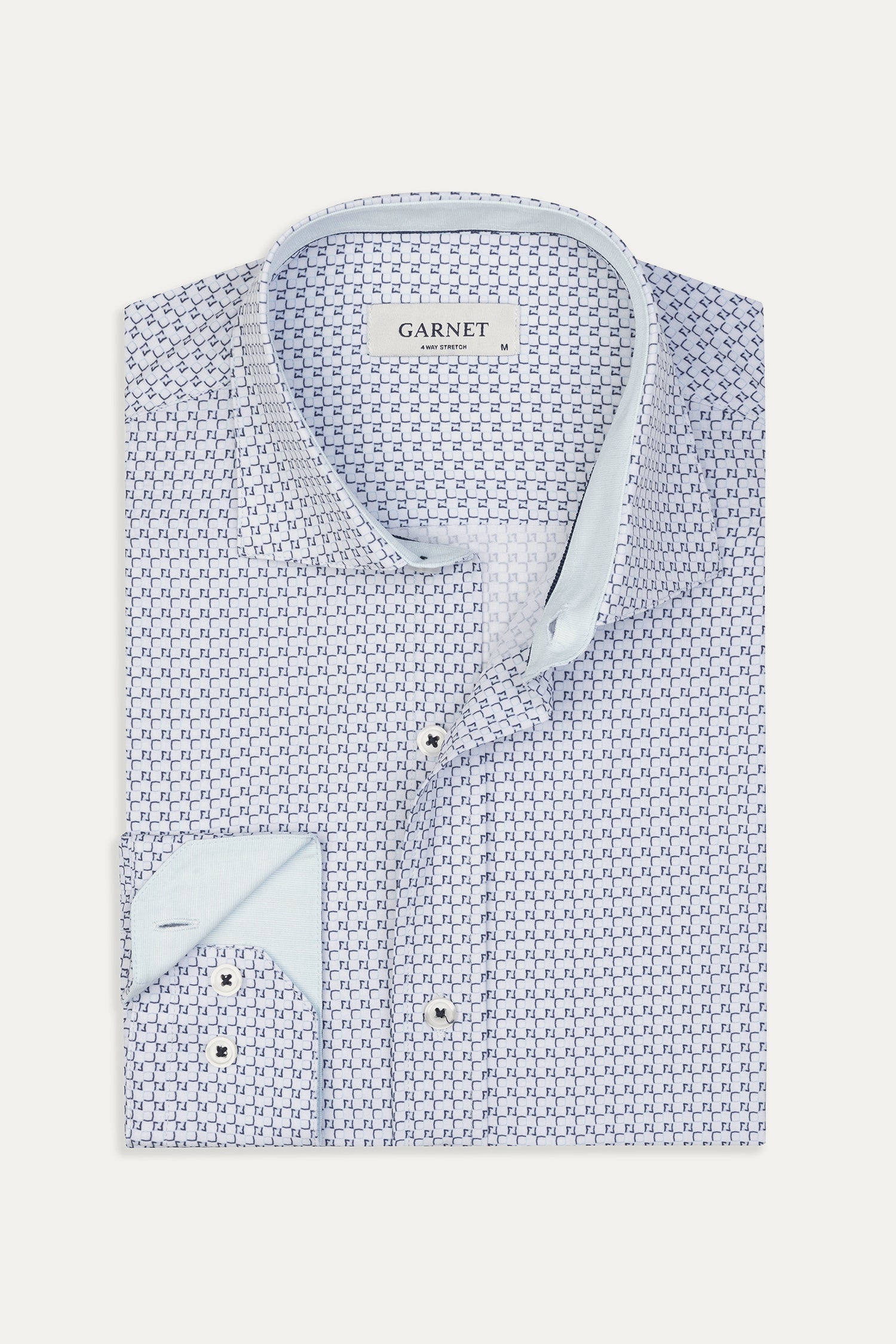 Sleek and refined, the Geo Weave Print Shirt features an intricate geometric pattern that adds a touch of contemporary sophistication. Its lightweight fabric and subtle texture make it a versatile choice for both business and casual settings.