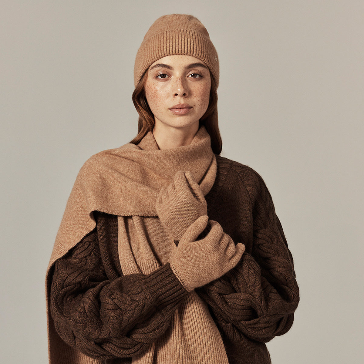 Crafted from certified cashmere, the Blaire gloves by Helen Kaminski bring effortless warmth with refined ease. Their softly fitted silhouette and 6cm folded rib-knit cuff adds sophistication��an essential for elevating any winter look.