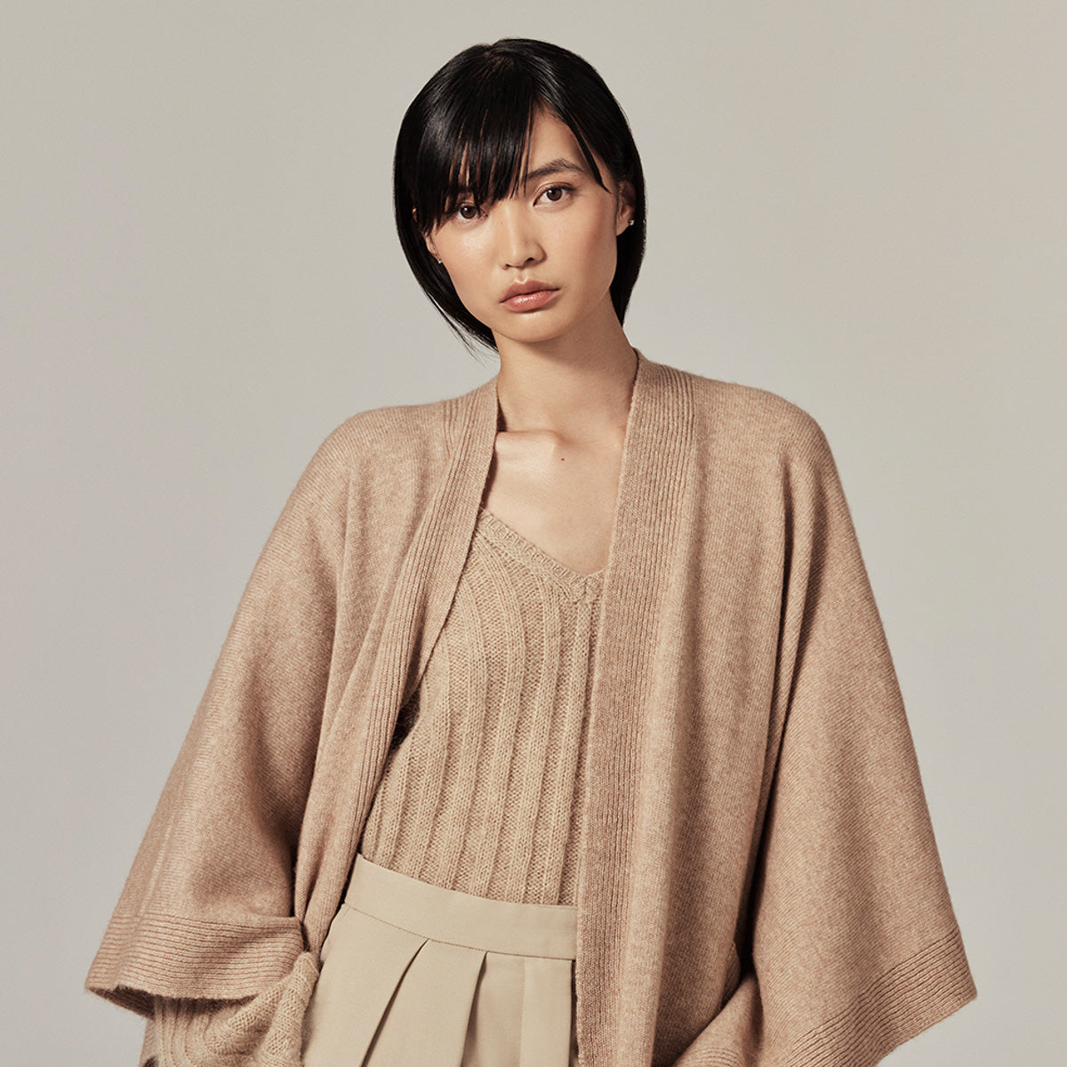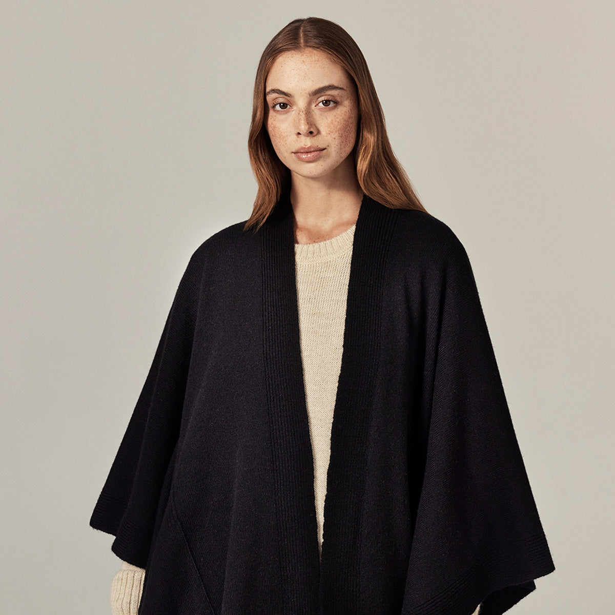 Woven from a rich wool blend, the Clara Poncho by Helen Kaminski drapes with fluidity, creating a refined yet relaxed silhouette. With its sleek finish and subtle texture, it��s designed to elevate transitional days and cool evenings with understated luxury.