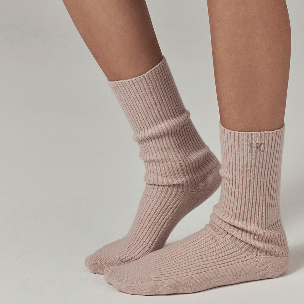Knitted from pure cashmere yarn, the Helen Kaminski Leif Socks offer indulgence with every wear. A rib-knit cuff ensures a snug fit, while the signature embroidered logo lends a thoughtful finishing touch��soft, understated, and undeniably special.