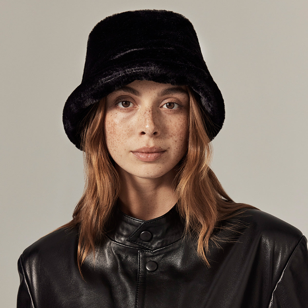 A winter favorite reimagined in plush certified recycled faux fur. The Saige Bucket by Helen Kaminski blends a sculptural silhouette with irresistible texture, lined in a soft cashmere blend for added warmth. Finished with a size adjustable grosgrain ribbon inner band, this piece brings cozy refinement to cold-weather styling.