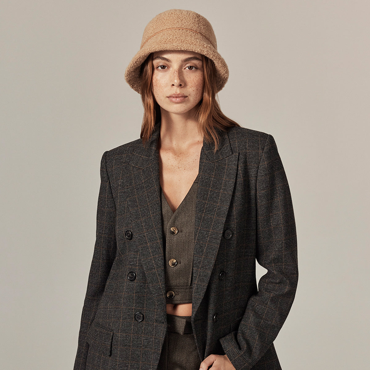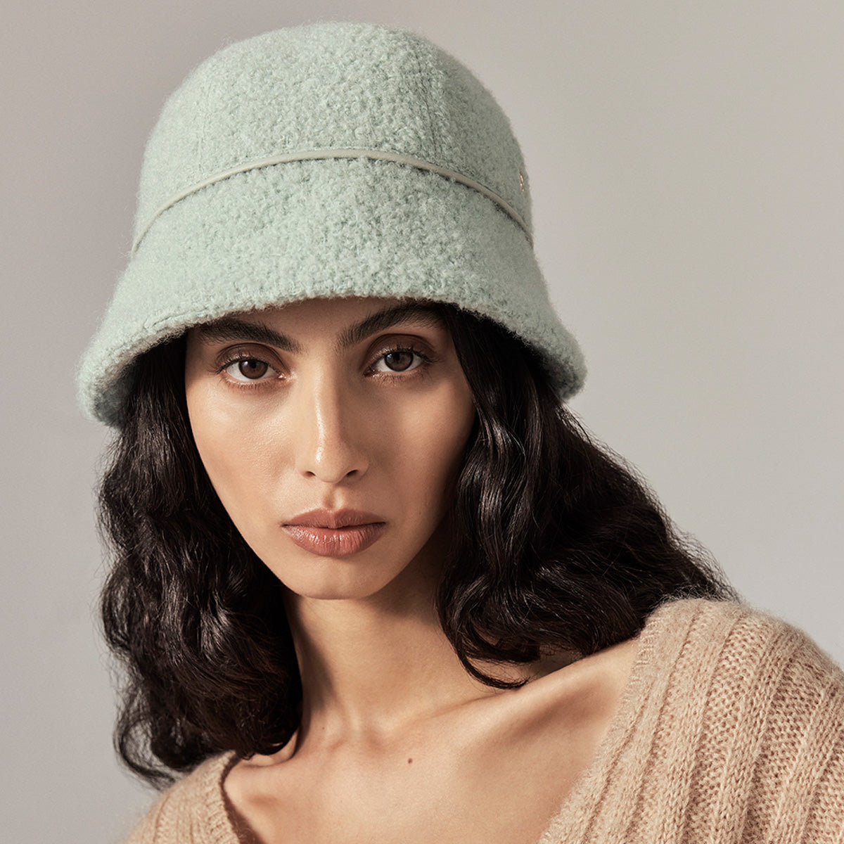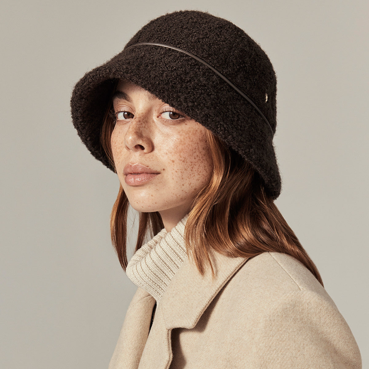 Thea by Helen Kaminski is crafted from an Italian wool-blend bouclé shaped with a softly flared brim and shallow crown. Understated leather trim and an adjustable interior deliver a thoughtful balance of comfort and considered design.