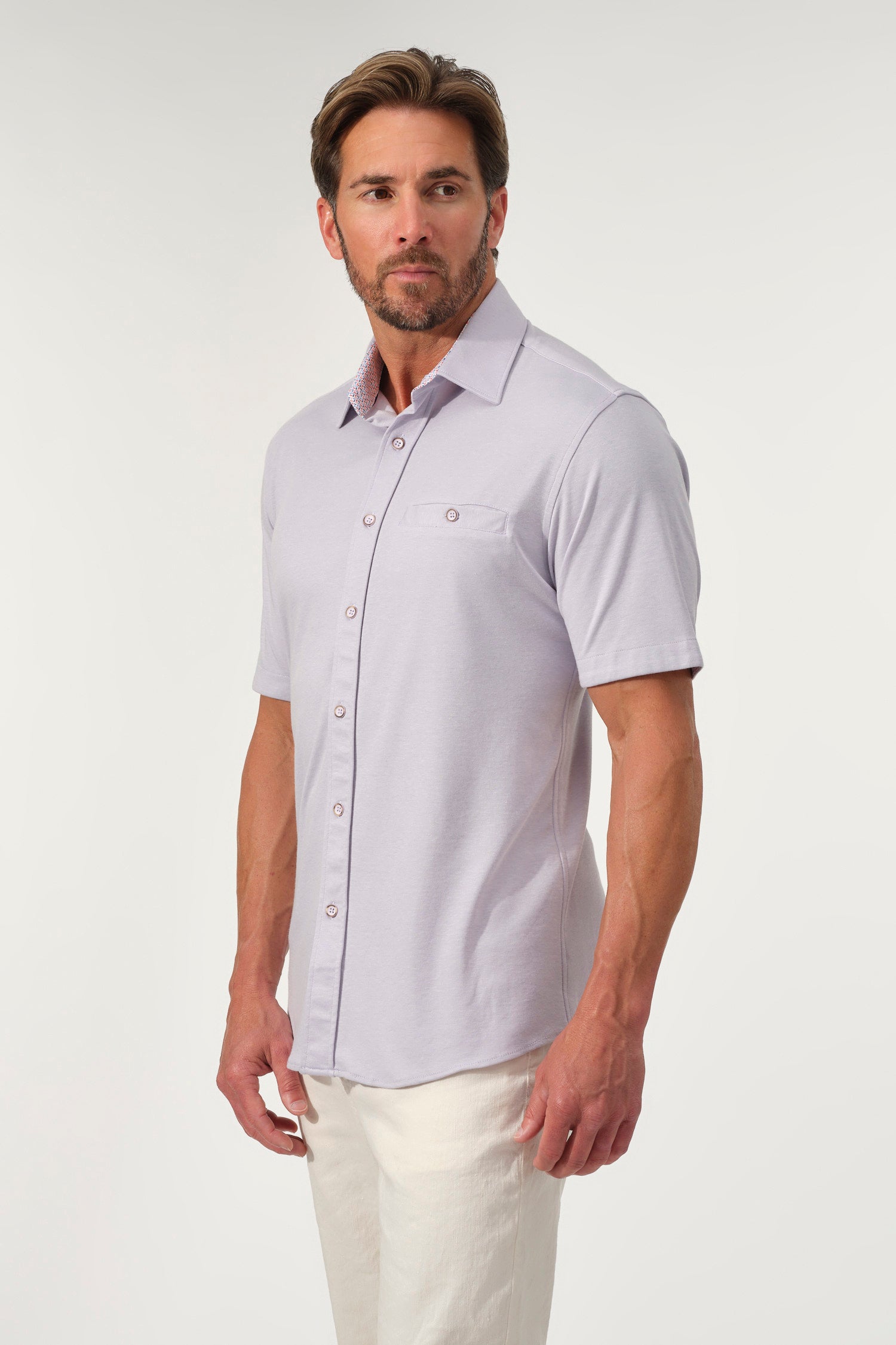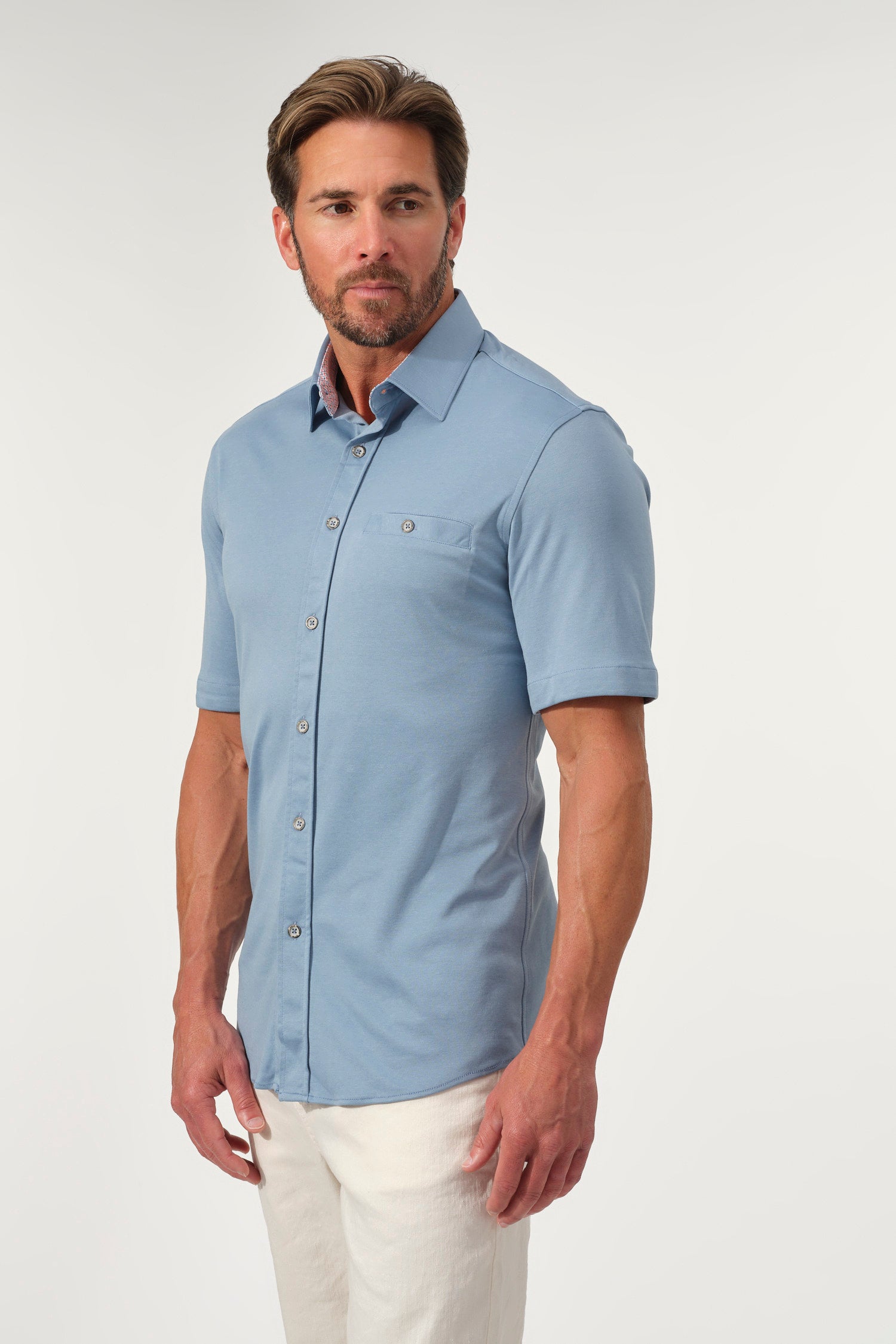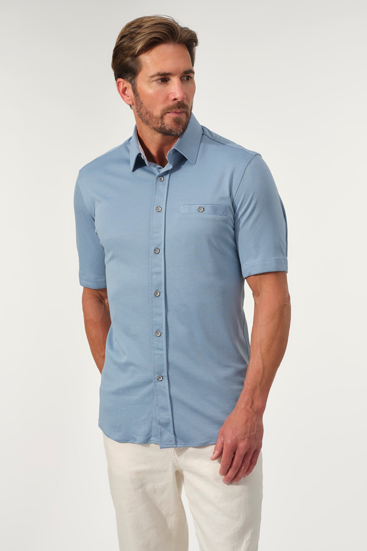 - Short sleeves with tailored fit