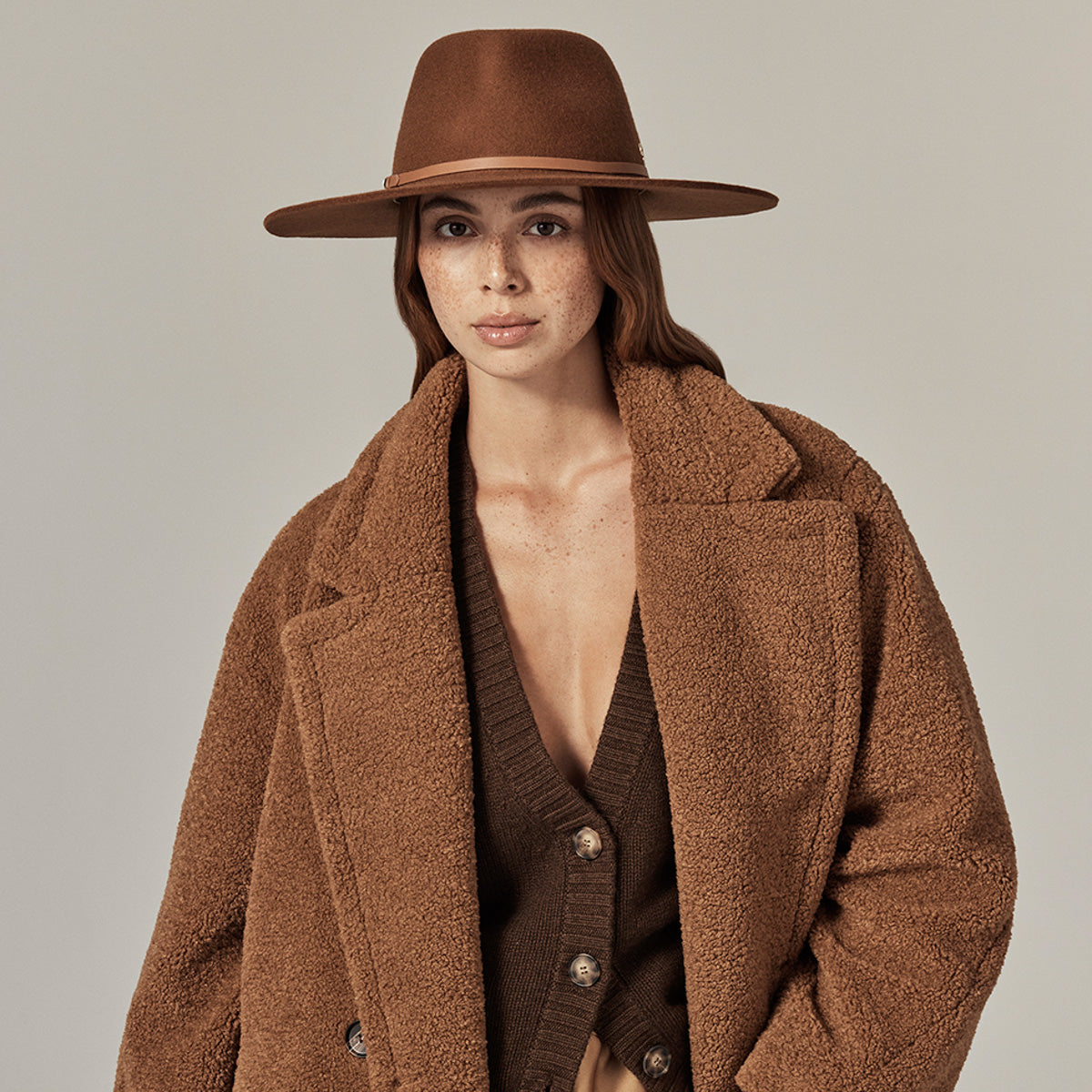 Bold yet timeless, the Helen Kaminski Claude Wool Fedora is crafted from rich Merino wool felt, offering a sculptural silhouette with a 10.5cm crown and flat 9cm brim. A smooth leather trim and signature equestrian snaffle detail elevate its classic shape with refined polish. Finished with a soft touch adjustable inner band and UPF 50+ protection, it brings modern elegance to seasonal dressing.