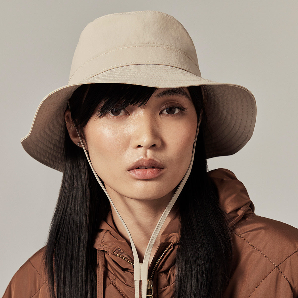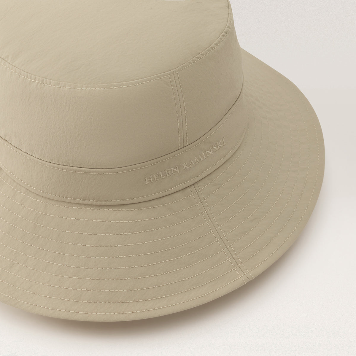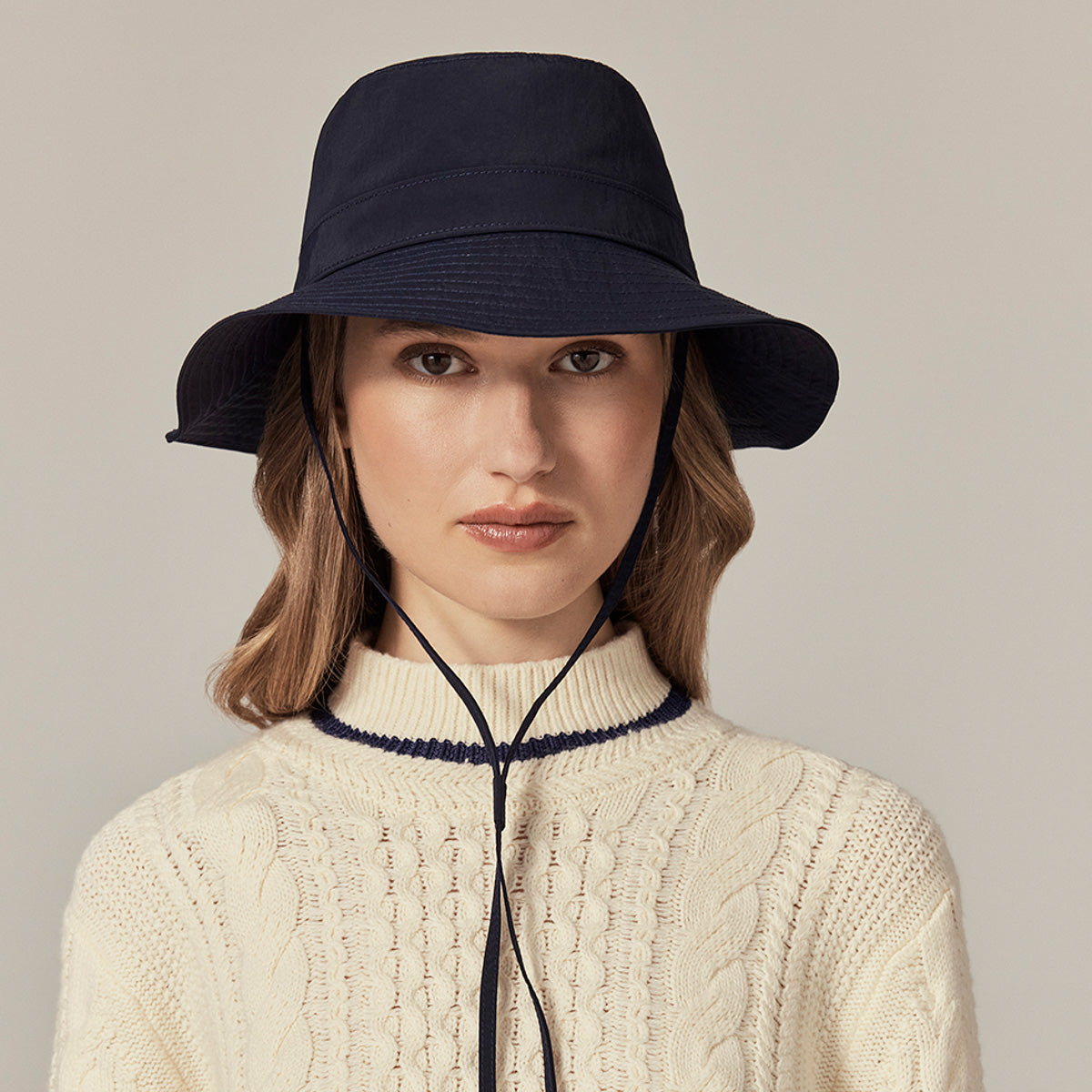 The Dayton Tech Weave Hat is crafted from water-repellent, recycled nylon—balancing utilitarian function with refined design. A structured 7.5cm brim offers extended coverage, while a detachable chin strap brings adaptability. Finished with a soft cotton lining, adjustable fit, and UPF 50+ protection
