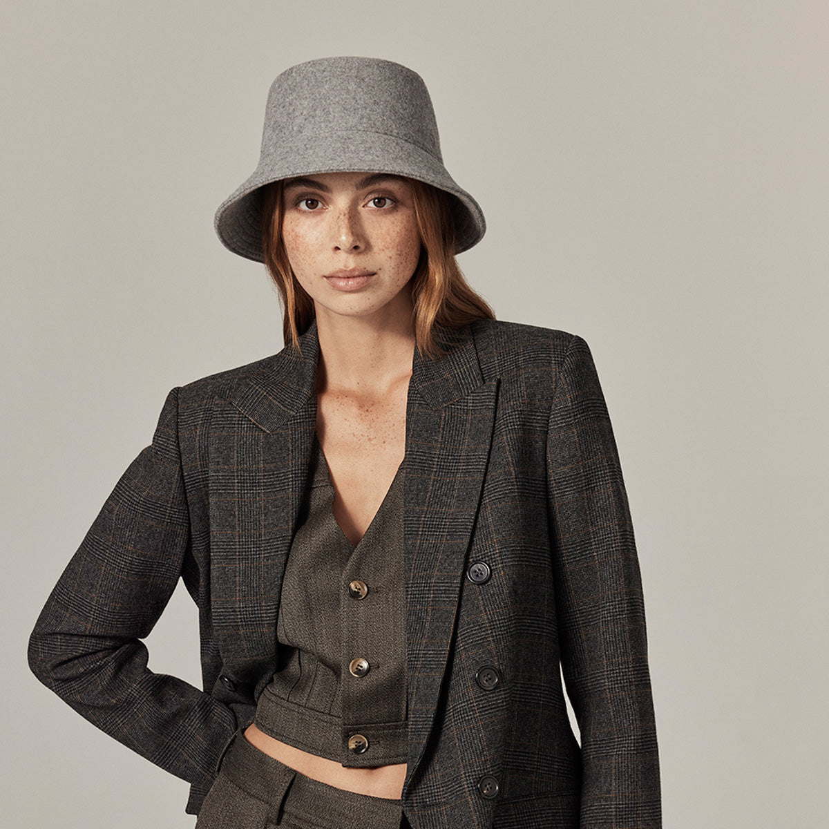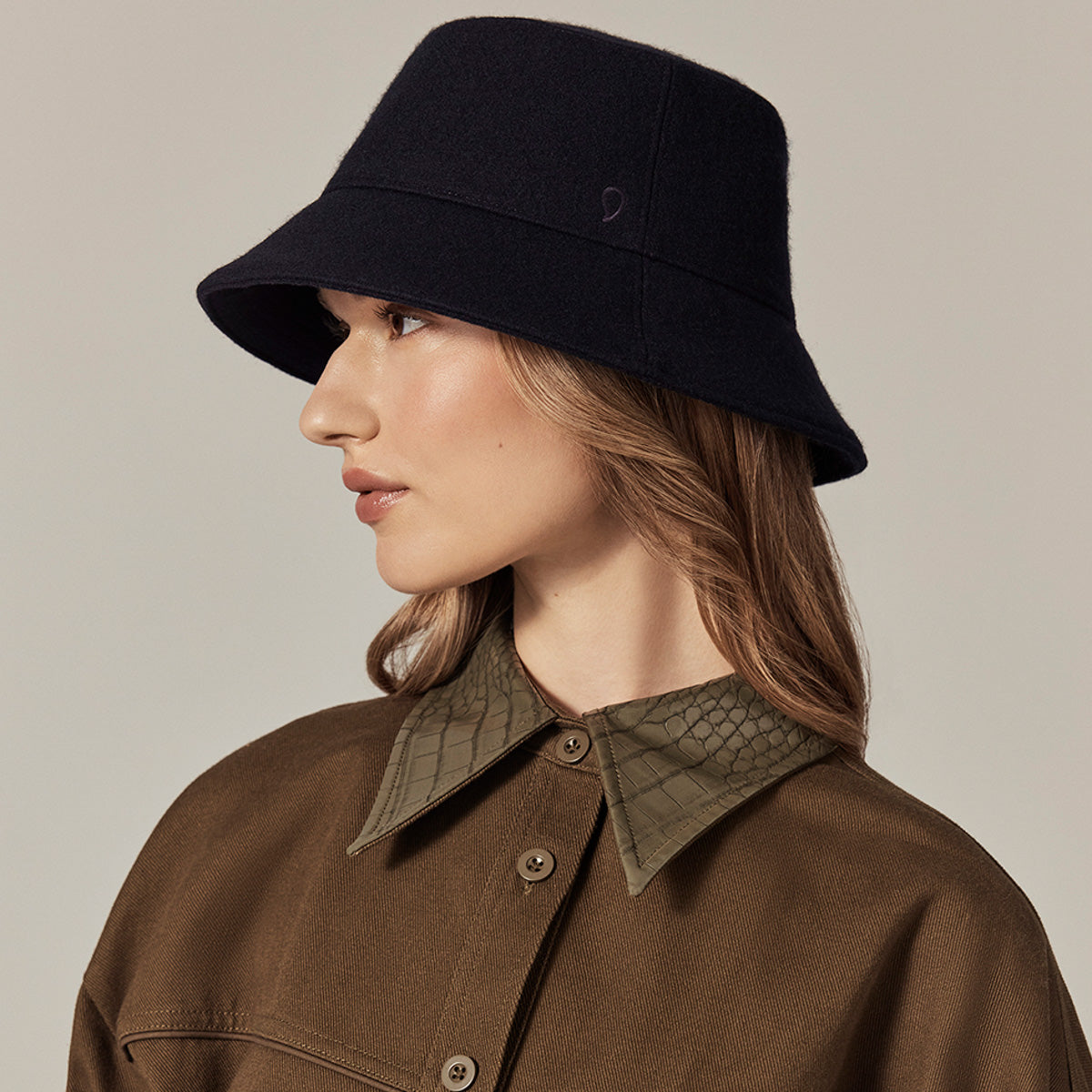 The Milton Wool Bucket by Kaminski combines Japanese brushed wool with clean, gender-neutral lines. A soft 6.5cm brim and grosgrain ribbon inner band offer an effortless fit, while UPF 50+ protection makes it an easy choice for everyday styling.