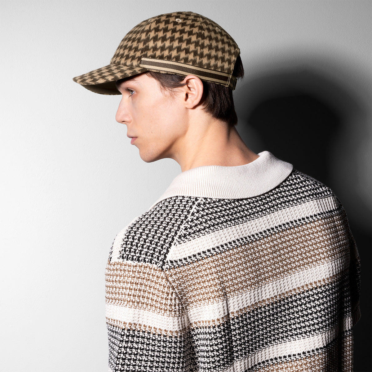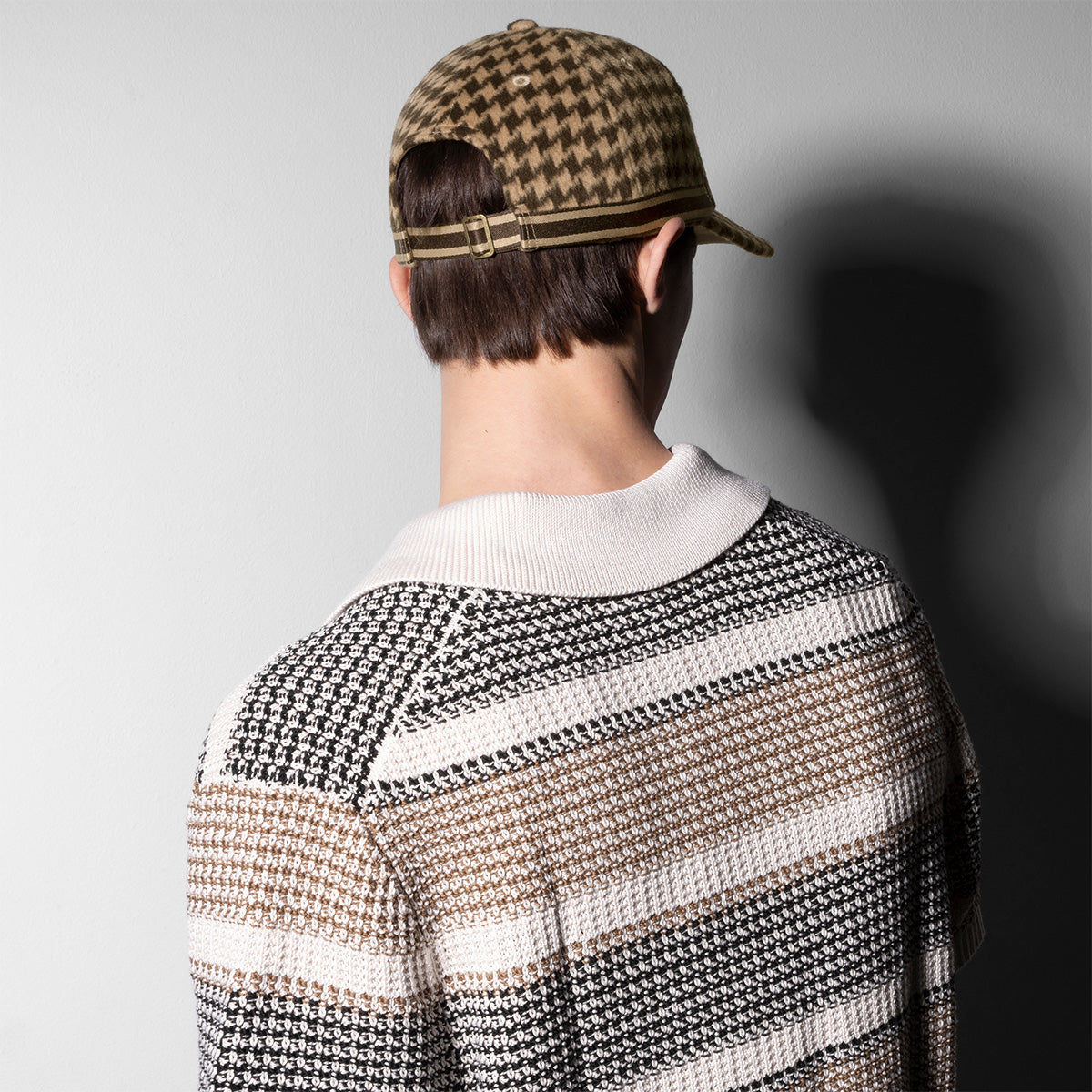 The Block Zig Baseball Cap by Kangol brings bold, modern style to a classic silhouette. Crafted from a wool-blend zig-zag herringbone fabric in high-contrast colors, this cap features matching striped taping that runs along the sides and connects seamlessly to the adjustable backstrap for a secure, customizable fit. Finished with a tonal Kangol™ Kangaroo logo at the front, it’s a standout piece for everyday wear.