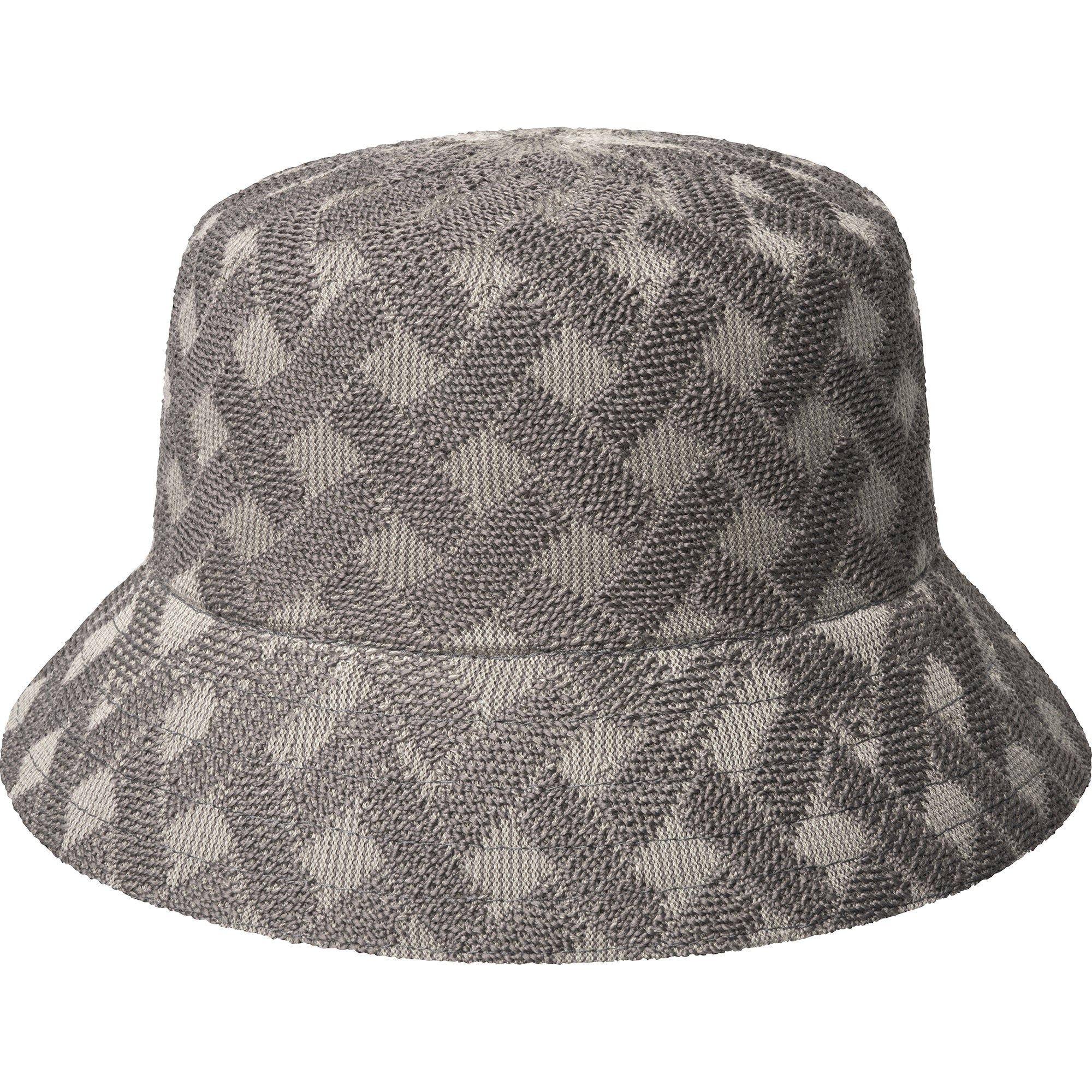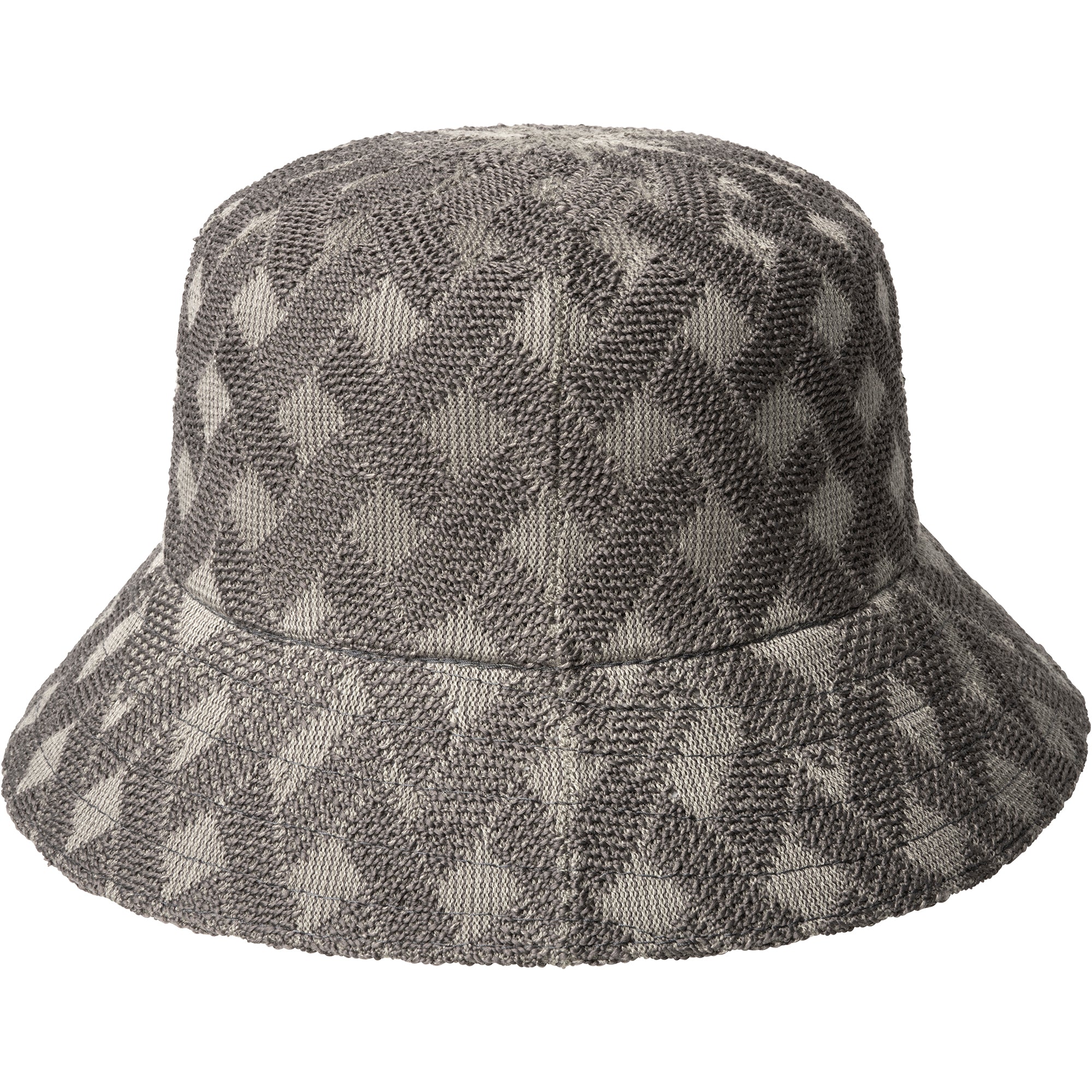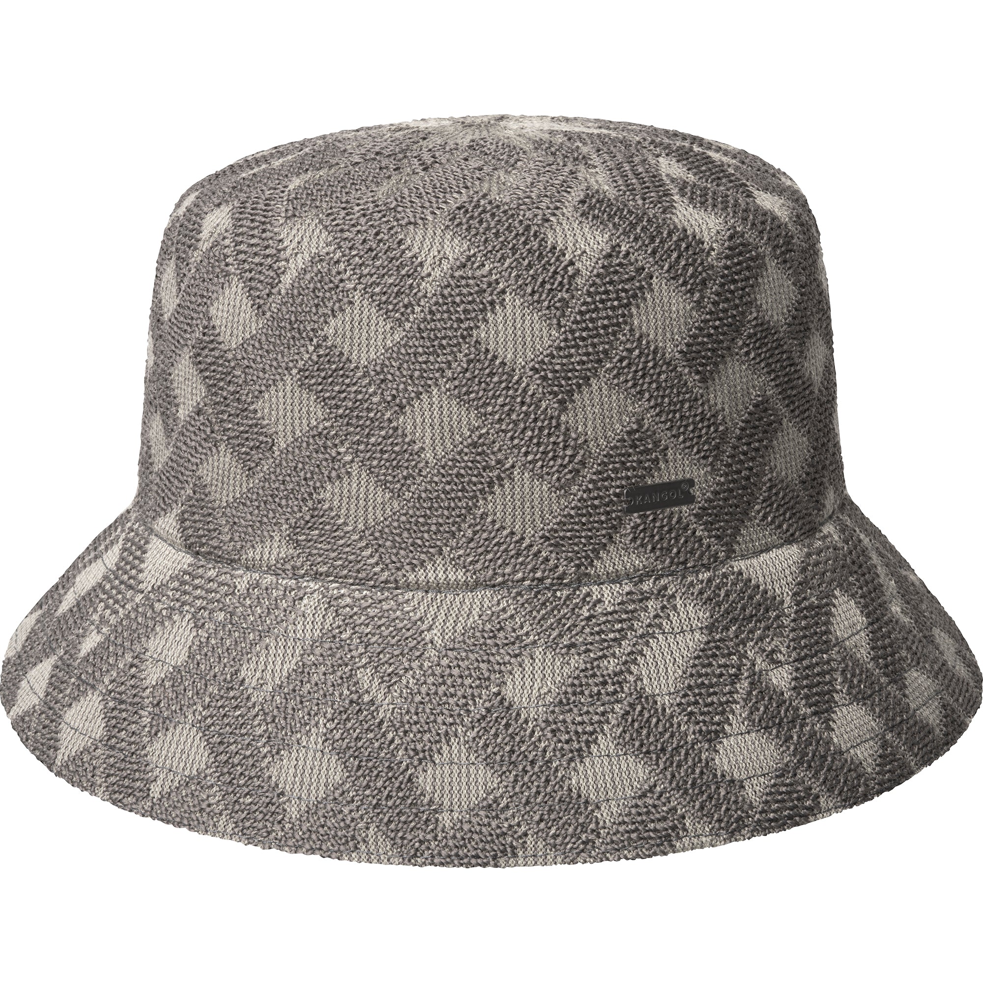 The Cross Weave Bucket by Kangol is inspired by handmade woven baskets and translated into a jacquard using our Wool and recycled polyester yarns. This Bucket shaped style has an allover high-low texture, thanks to the unique knitting definition throughout. It is finished with a Kangol�� metal logo pin at the left side head.