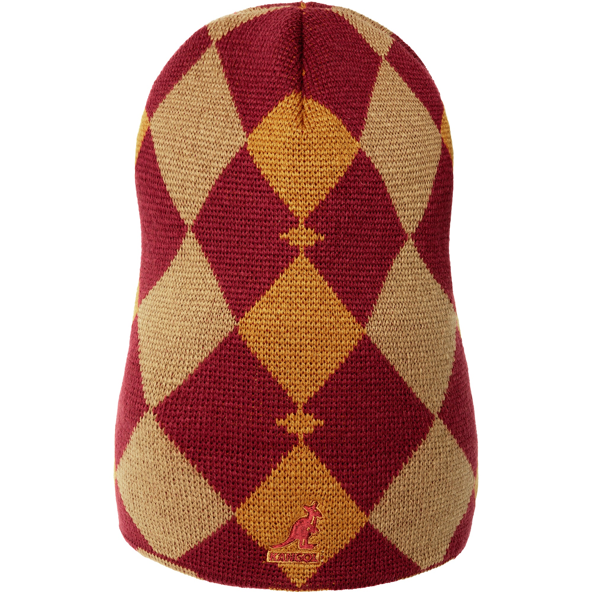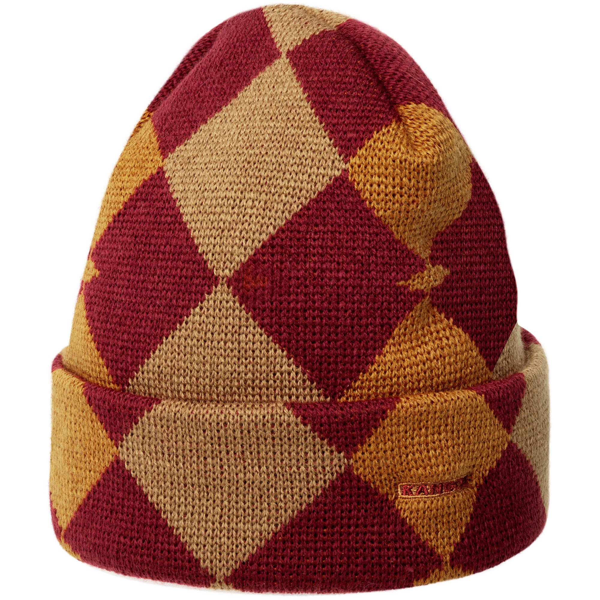 The Gentle Argyle 2-Way Pull-On by Kangol is an acrylic knit jacquard in a convertible Beanie. The nod to the classic argyle pattern is throughout, using three colors of yarn to create it. It can be worn with the cuff folded, with the Kangol™ wordmark at the left side of the head or worn uncuffed and slouchy with the Kangol™ kangaroo logo at the center front.
