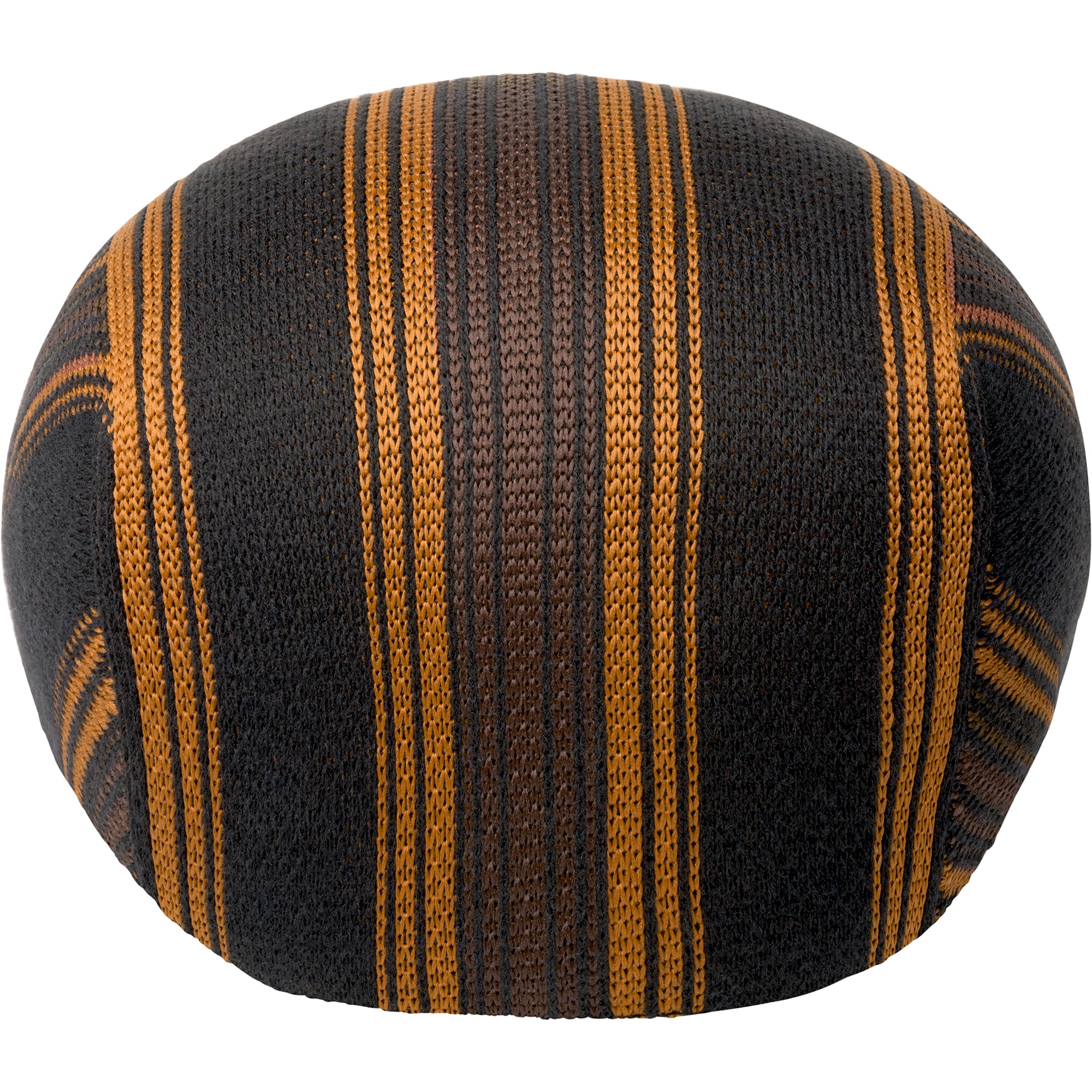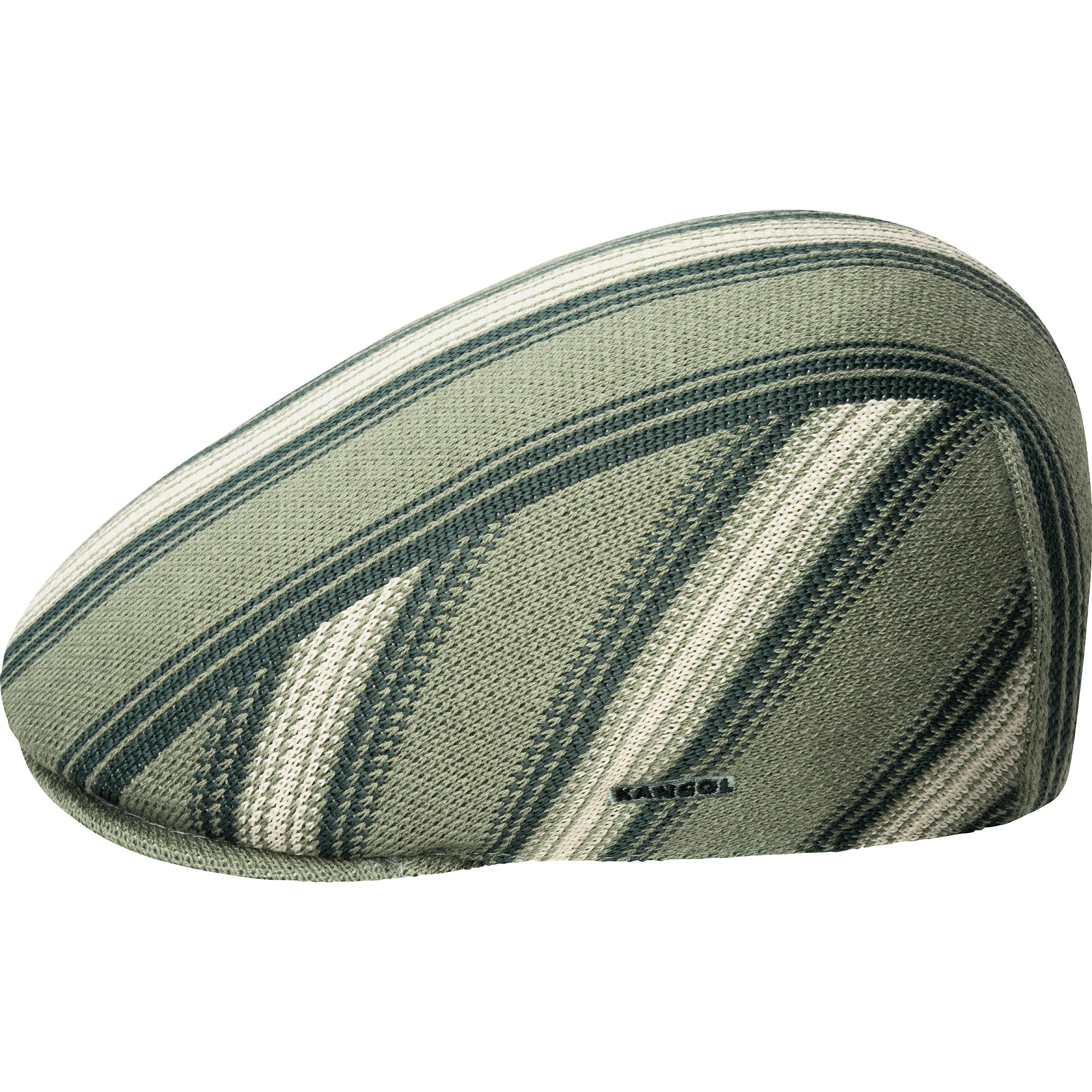 The Nostalgia Stripe 507 by Kangol is a tri-colored jacquard knit in a paneled 507 shape. The knit is a combination of Wool, Tropic, and recycled polyester yarns. The panels on this style allow for the retro-inspired gradient stripes to have some movement in the design. It is finished with a tonal Kangol™ wordmark at the left side head.