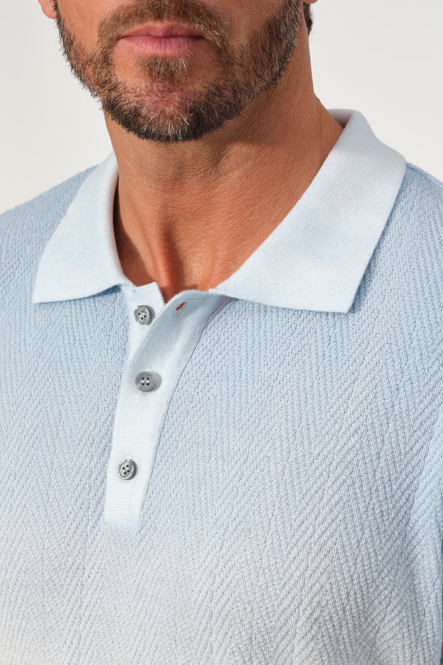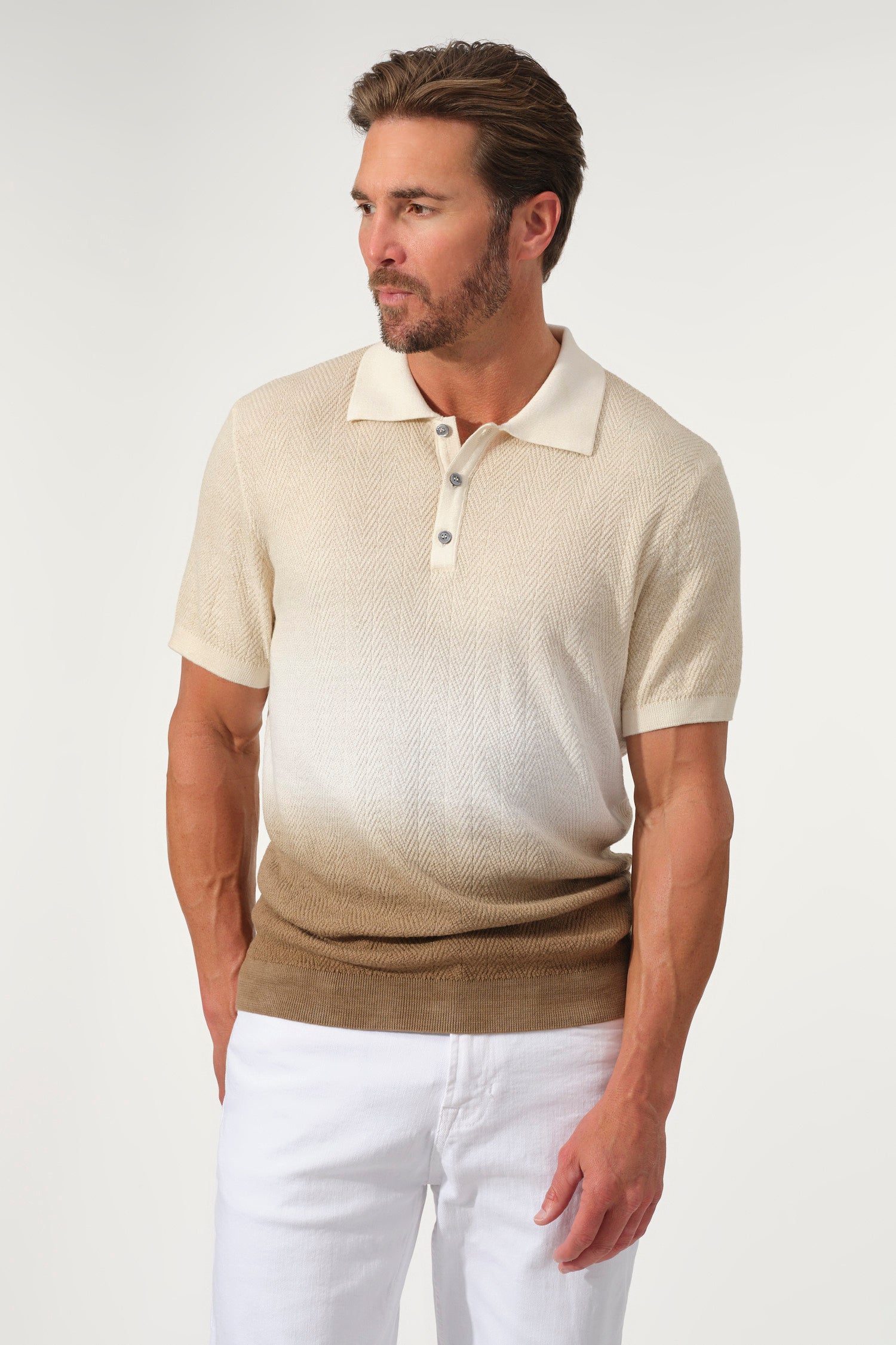 A modern take on a timeless classic, the Ombre Knit Polo Shirt brings effortless sophistication with its gradient design and textured knit. Crafted from a breathable cotton blend, it offers lightweight comfort with a refined aesthetic. The subtle herringbone pattern adds depth, making it a standout piece for any wardrobe.