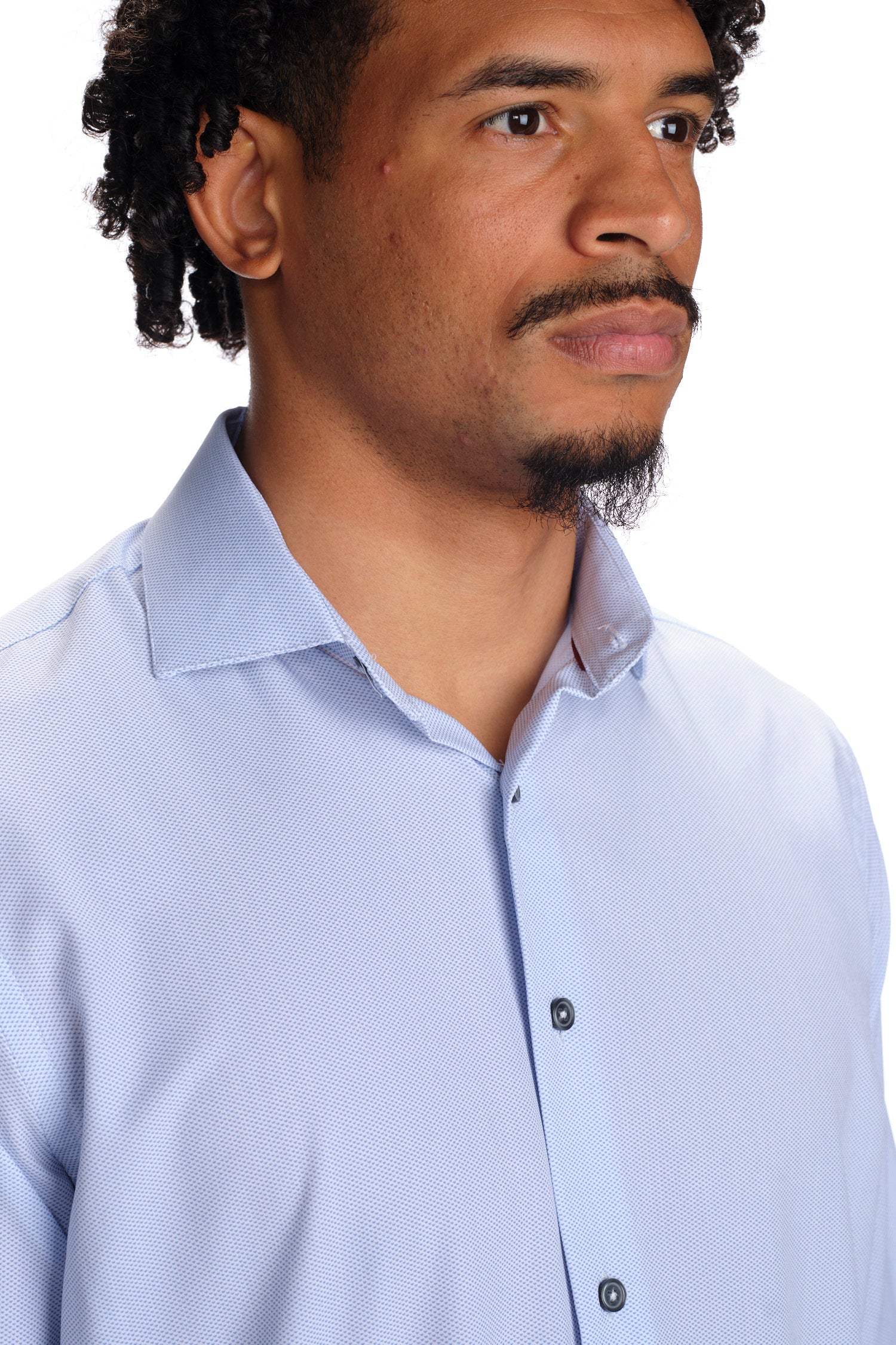 - Button-up front with a spread collar