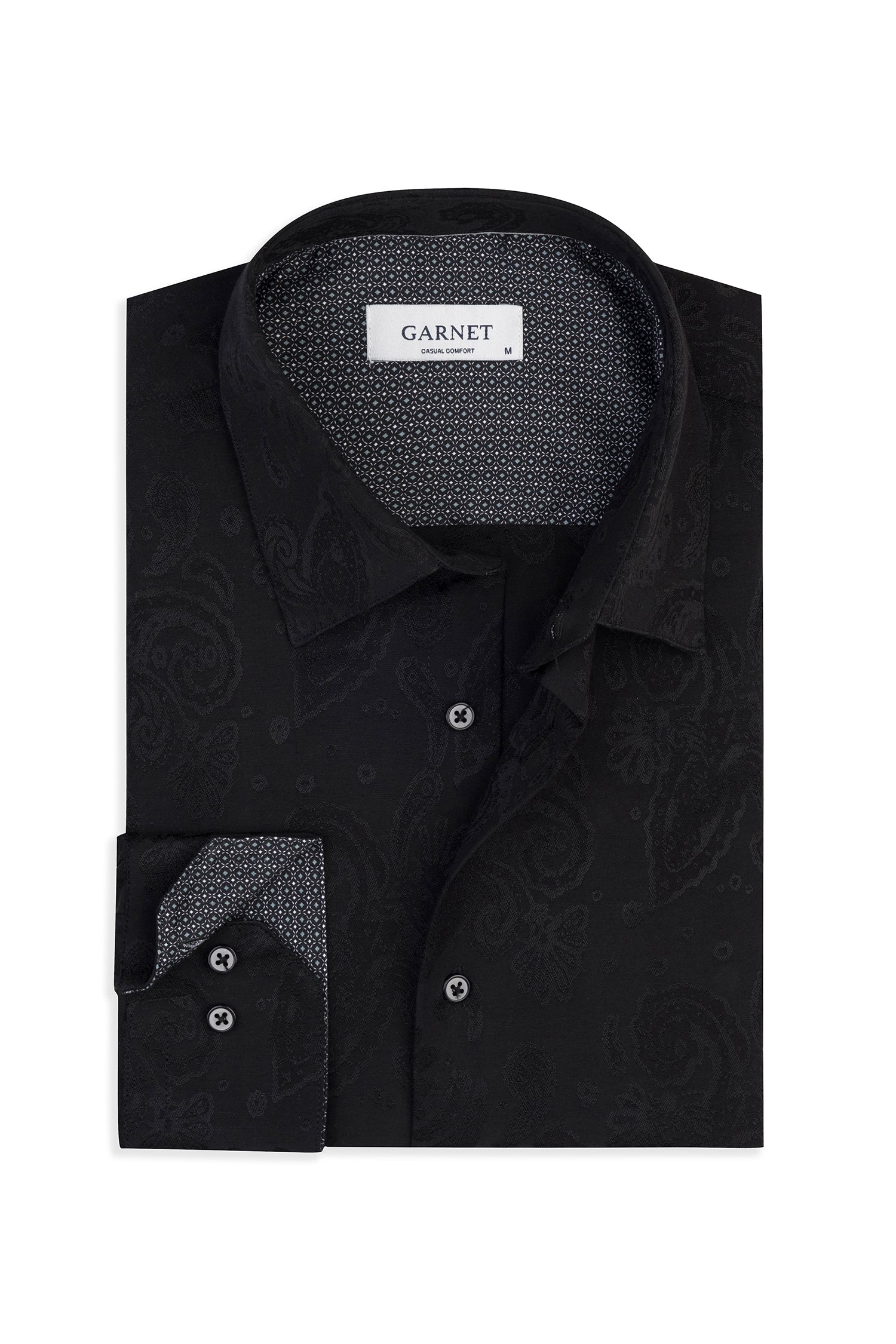 This jacquard shirt is a modern classic, woven with an elegant tonal paisley pattern that catches the light without overpowering the look. It’s subtle, rich in texture, and effortlessly versatile—from refined eveningwear to elevated day-to-night dressing. Inside, a contrast geometric trim at the collar and cuff adds a sharp finishing touch.