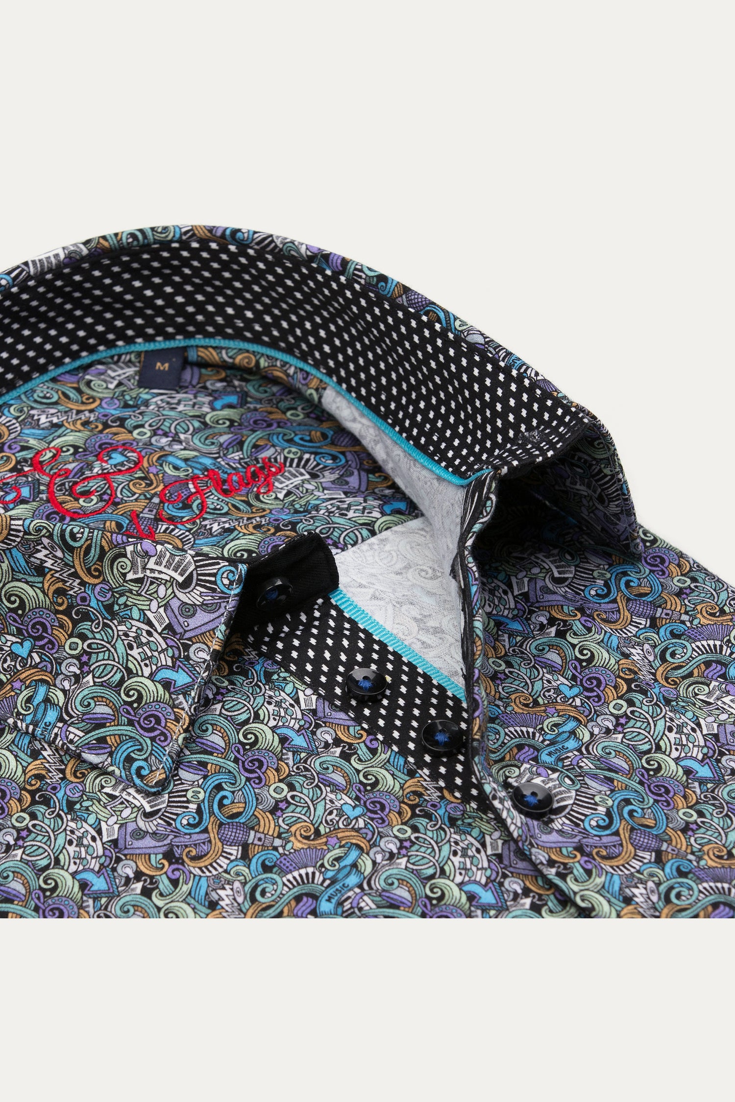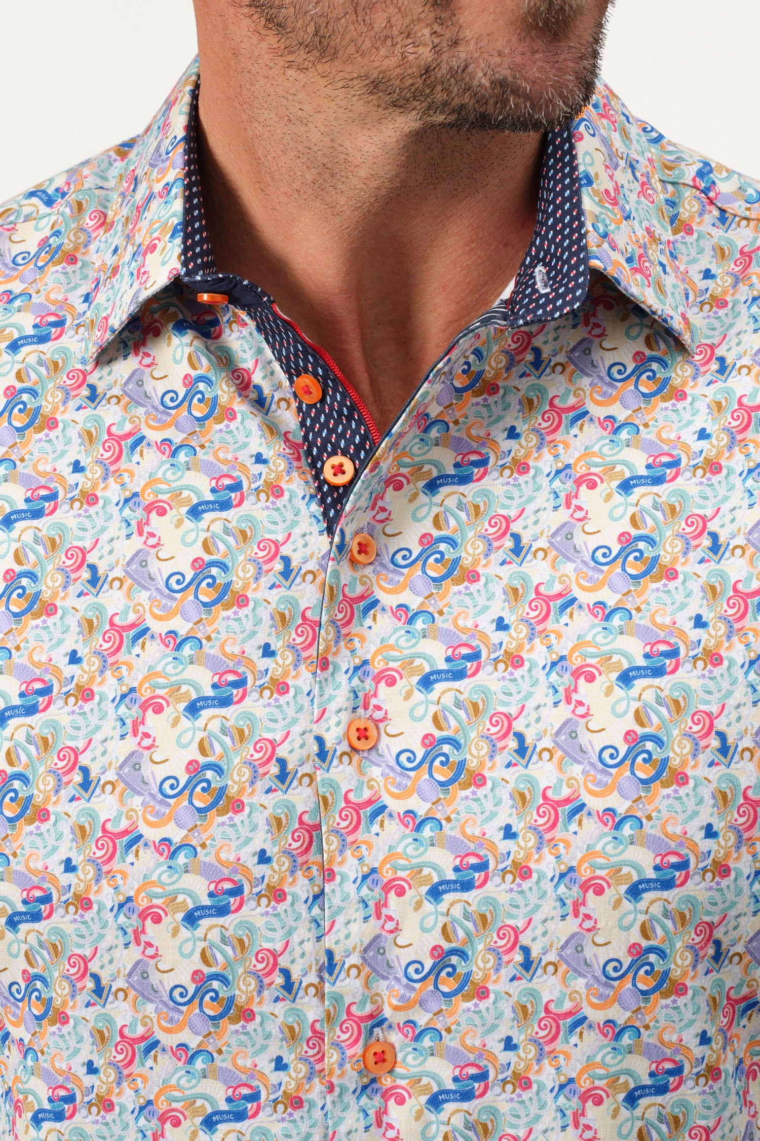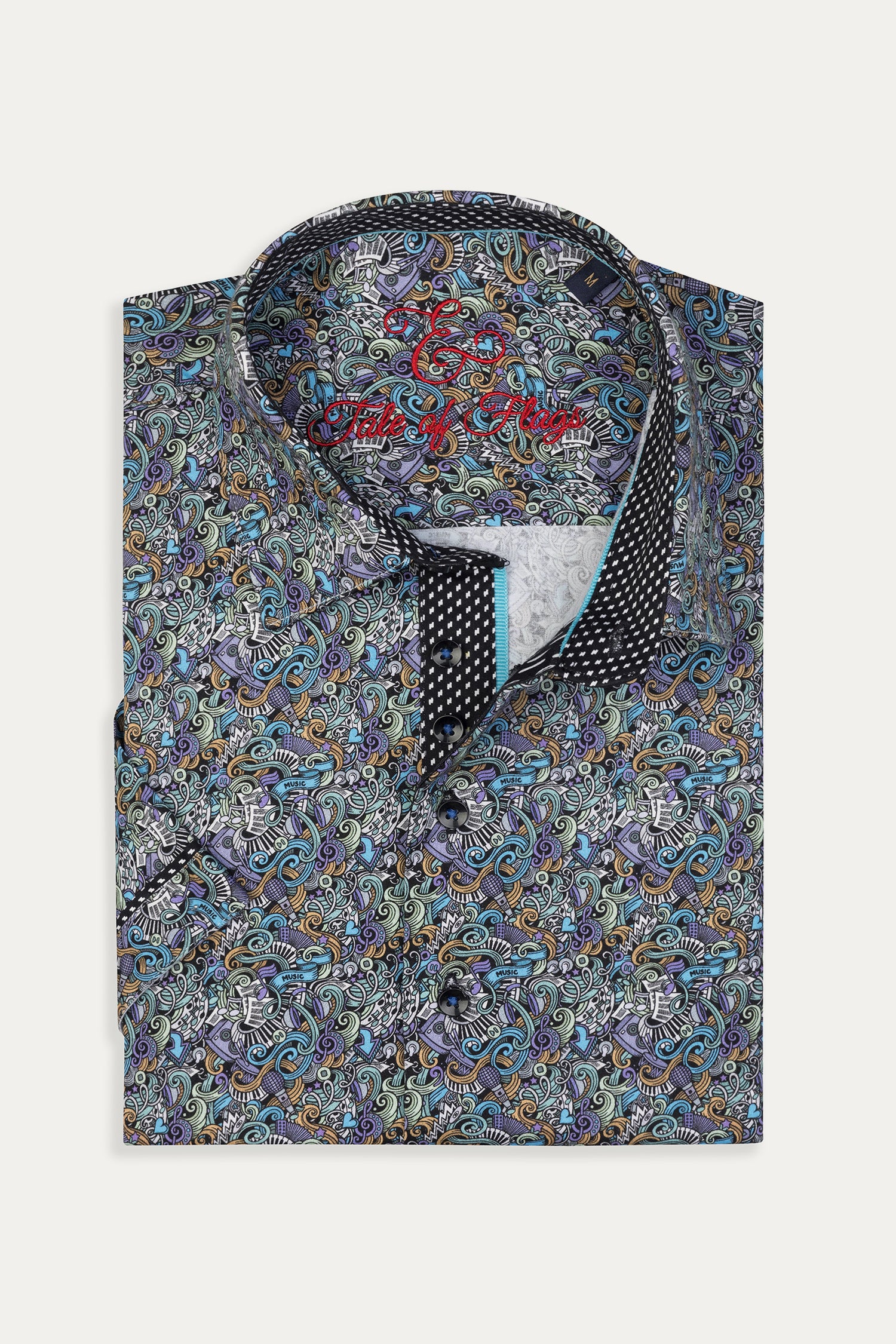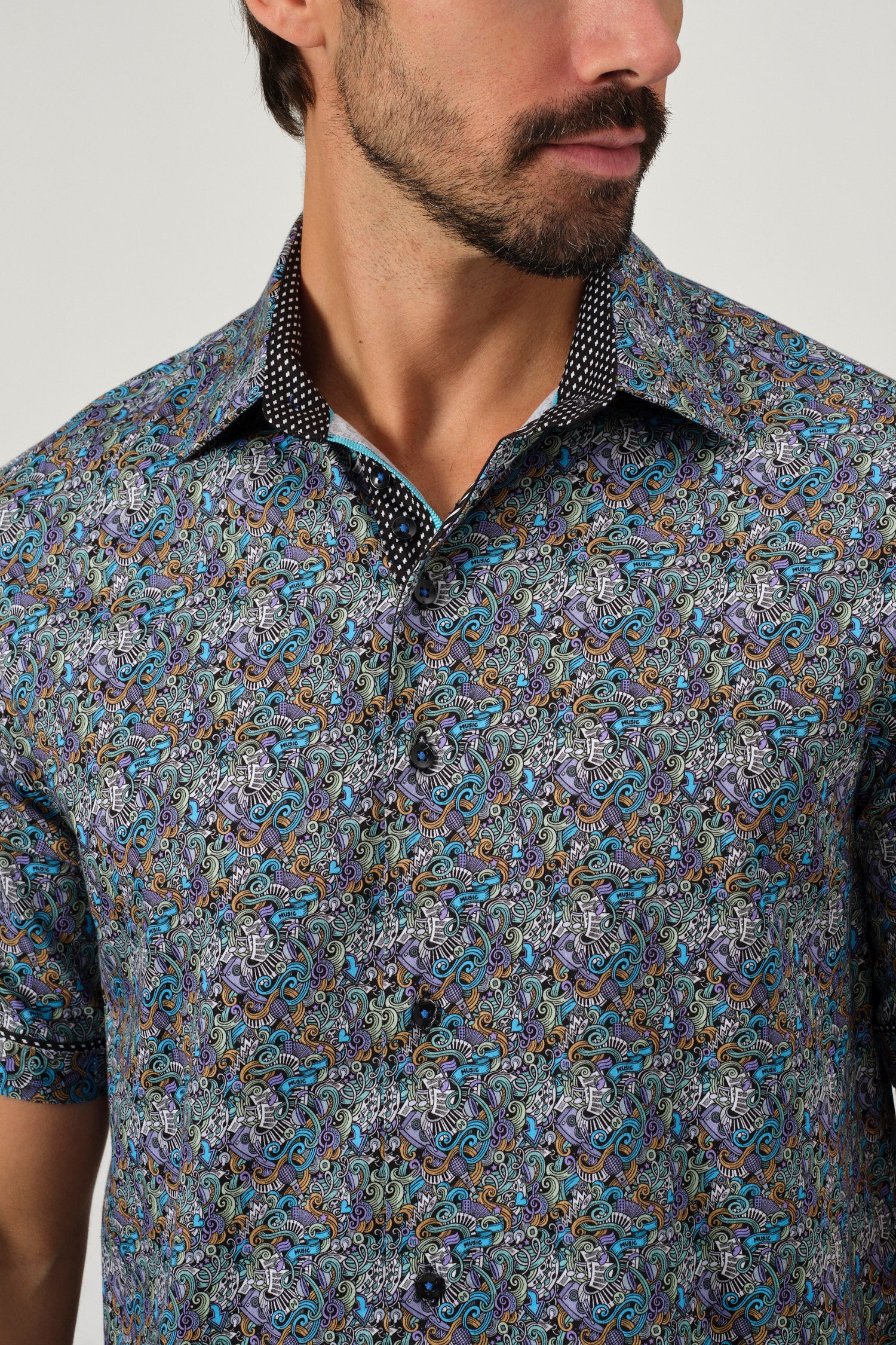 A sophisticated fusion of intricate artistry and modern tailoring, the Baroque Scroll Shirt is a statement piece for the refined wardrobe. Designed with an elaborate scroll pattern in vibrant hues, this short-sleeve button-up is crafted from a soft offering both comfort and slight stretch for ease of movement. The contrasting inner collar and cuff details add an extra layer of elegance, making it perfect for smart-casual occasions.
