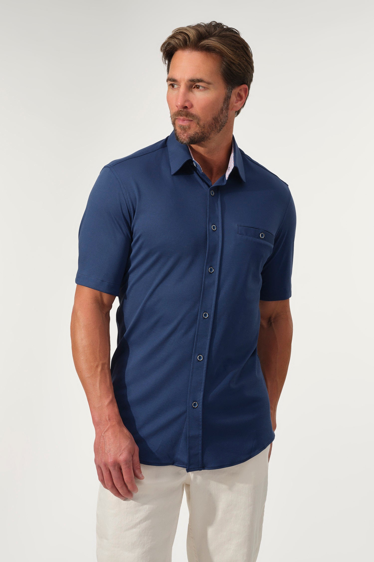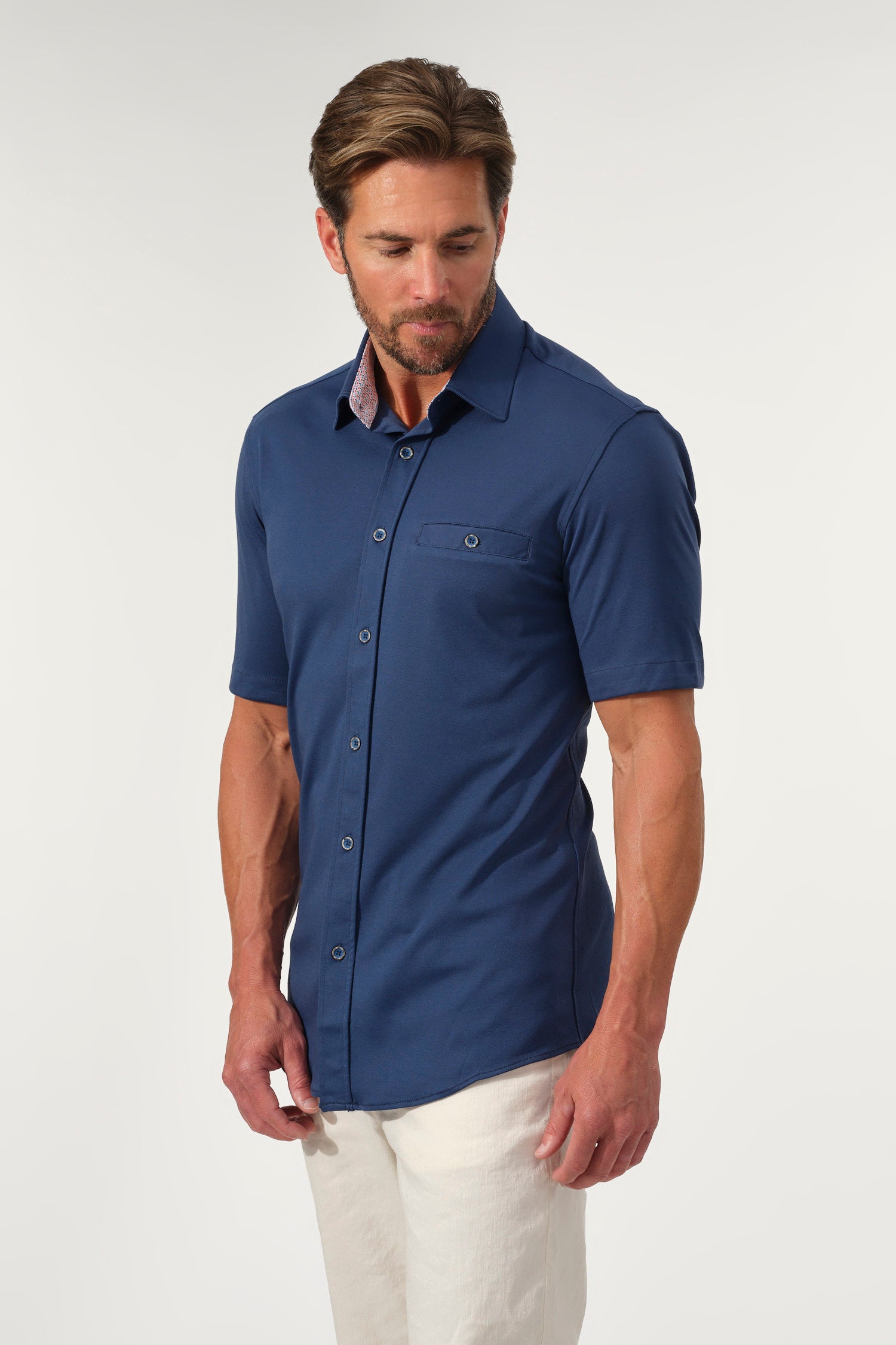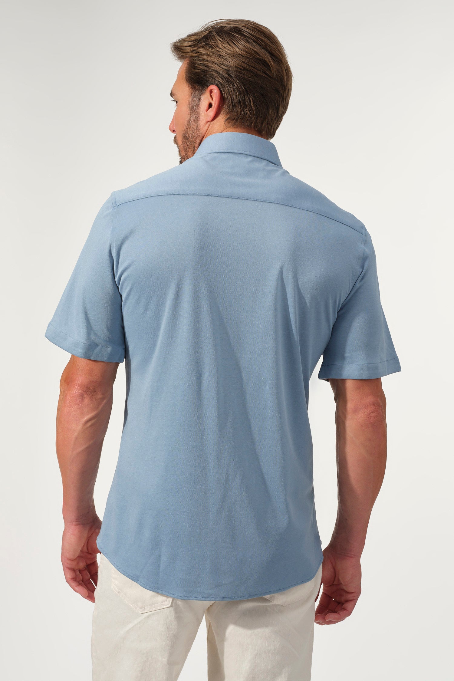 - Short sleeves with tailored fit
