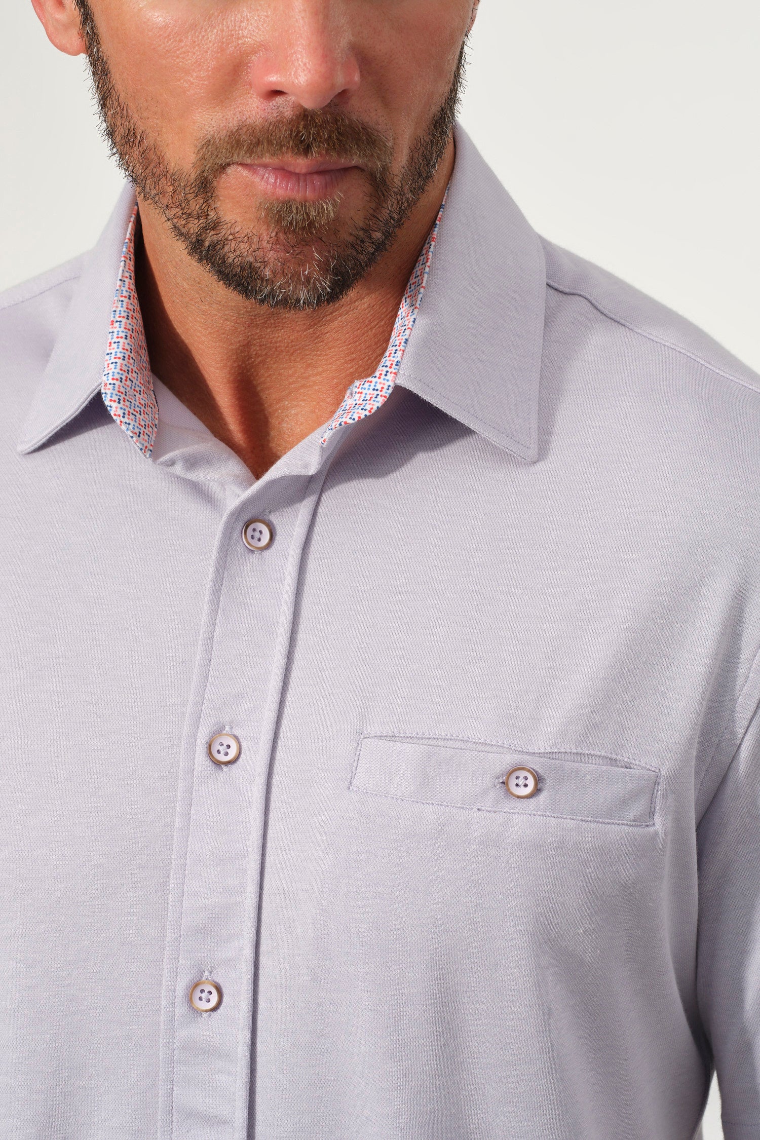 - Spread collar and tonal buttons