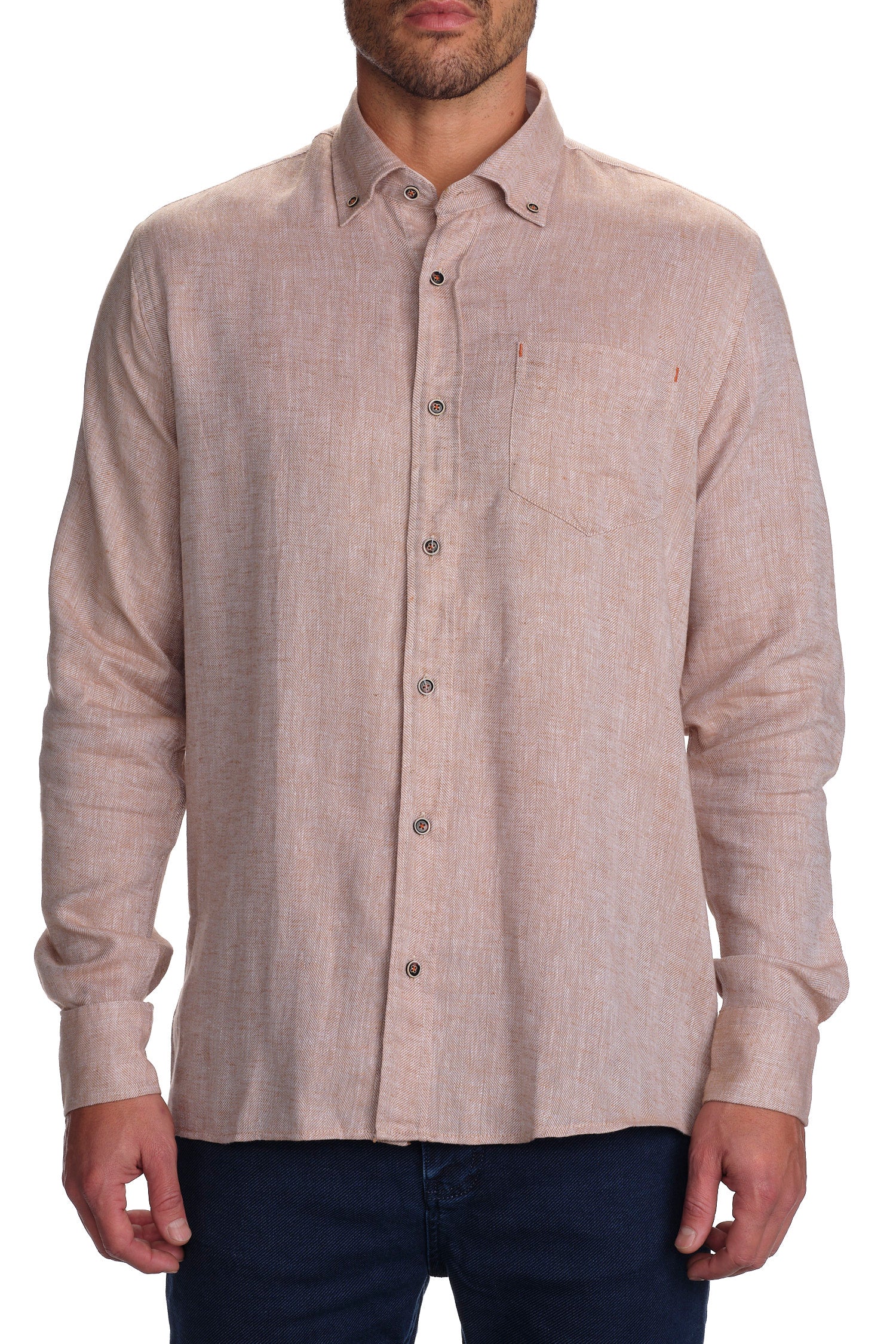 Add a dash of playful elegance to your wardrobe with our Herringbone Linen Blend Shirt. The subtle herringbone pattern combined with the lightweight linen blend makes this shirt perfect for both work and play. Get ready to turn heads and make a statement with this quirky and stylish addition to your closet. (Bonus: It's also super comfortable!)
