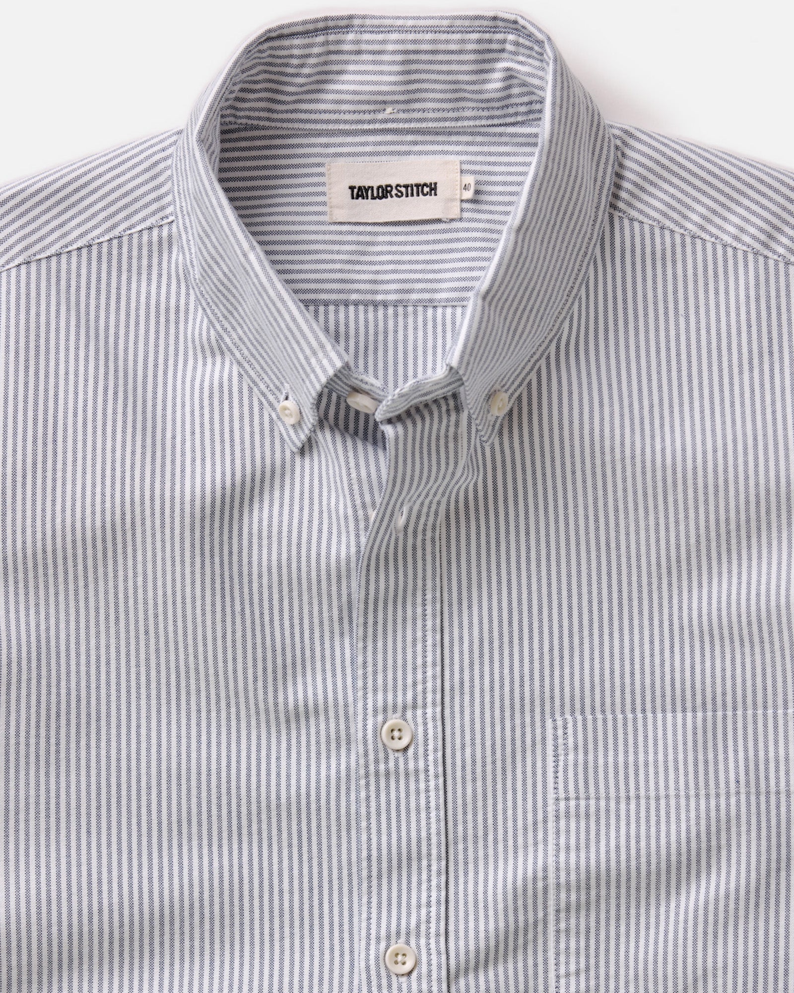 The Jack in Navy University Stripe Everyday Oxford from Taylor Stitch