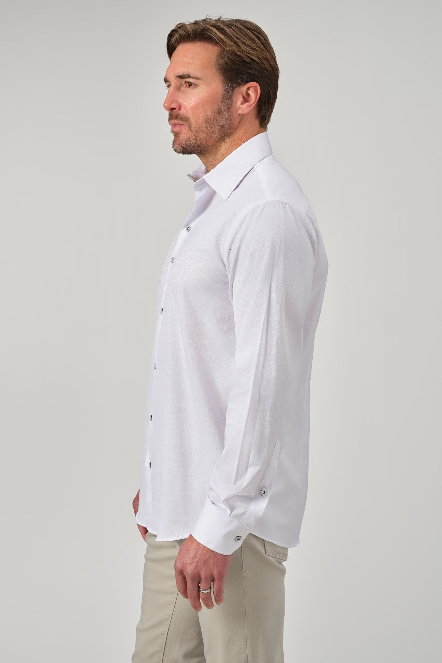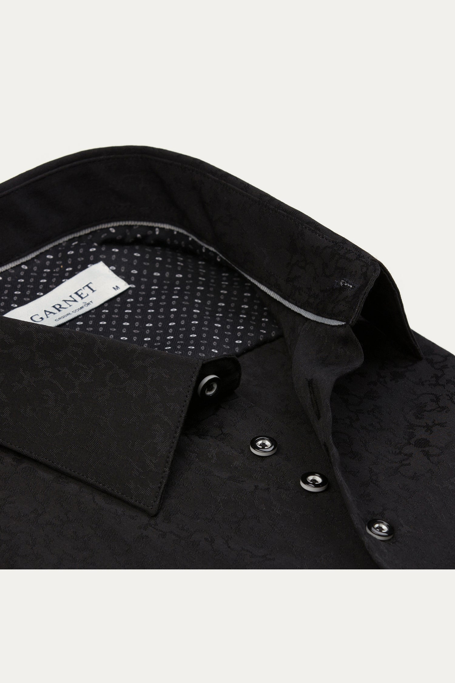 Elevate your wardrobe with the understated elegance of the Obsidian Brocade Shirt. Featuring a subtle woven pattern and sleek detailing, this shirt is perfect for sophisticated occasions or polished everyday wear.