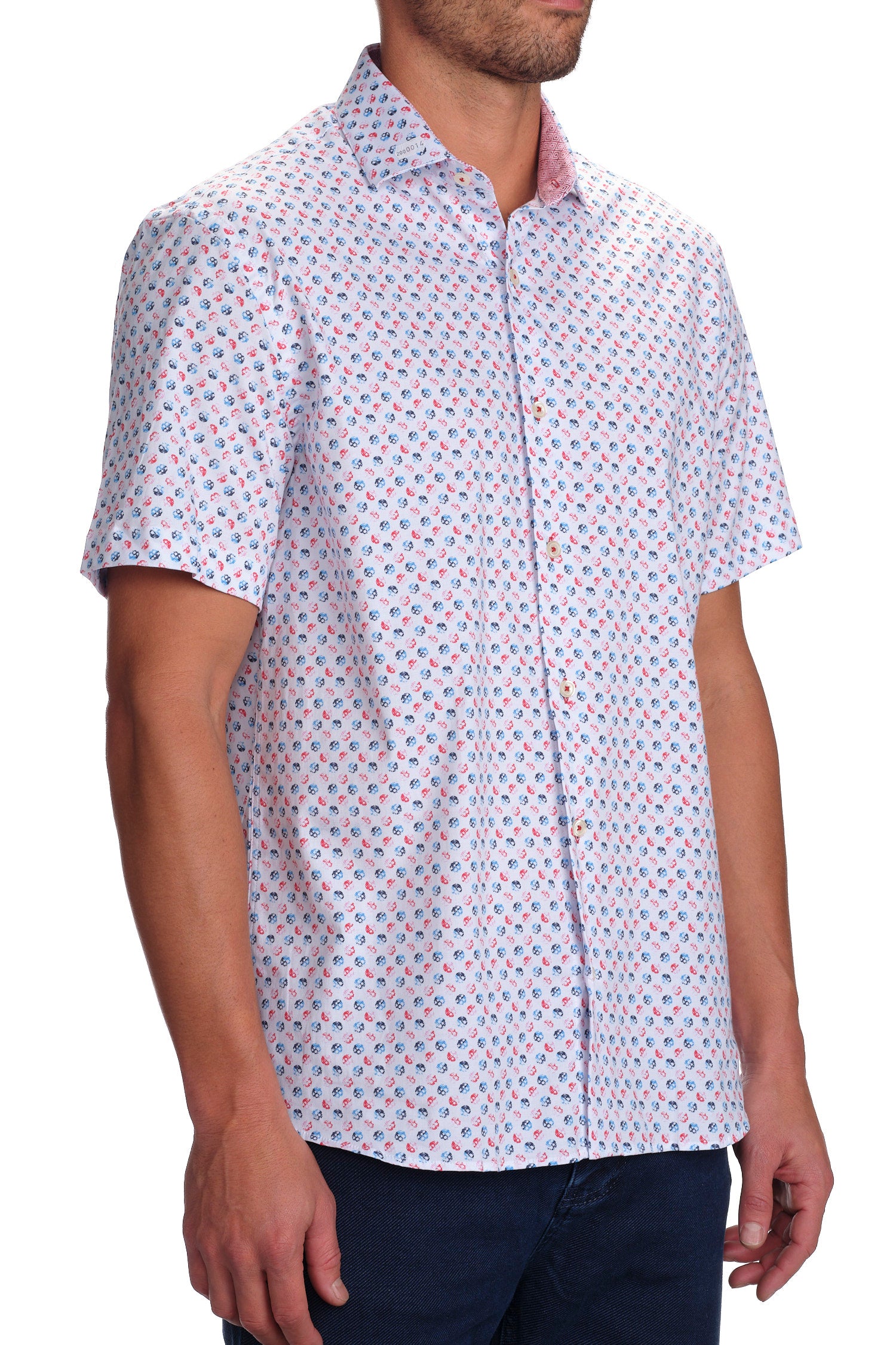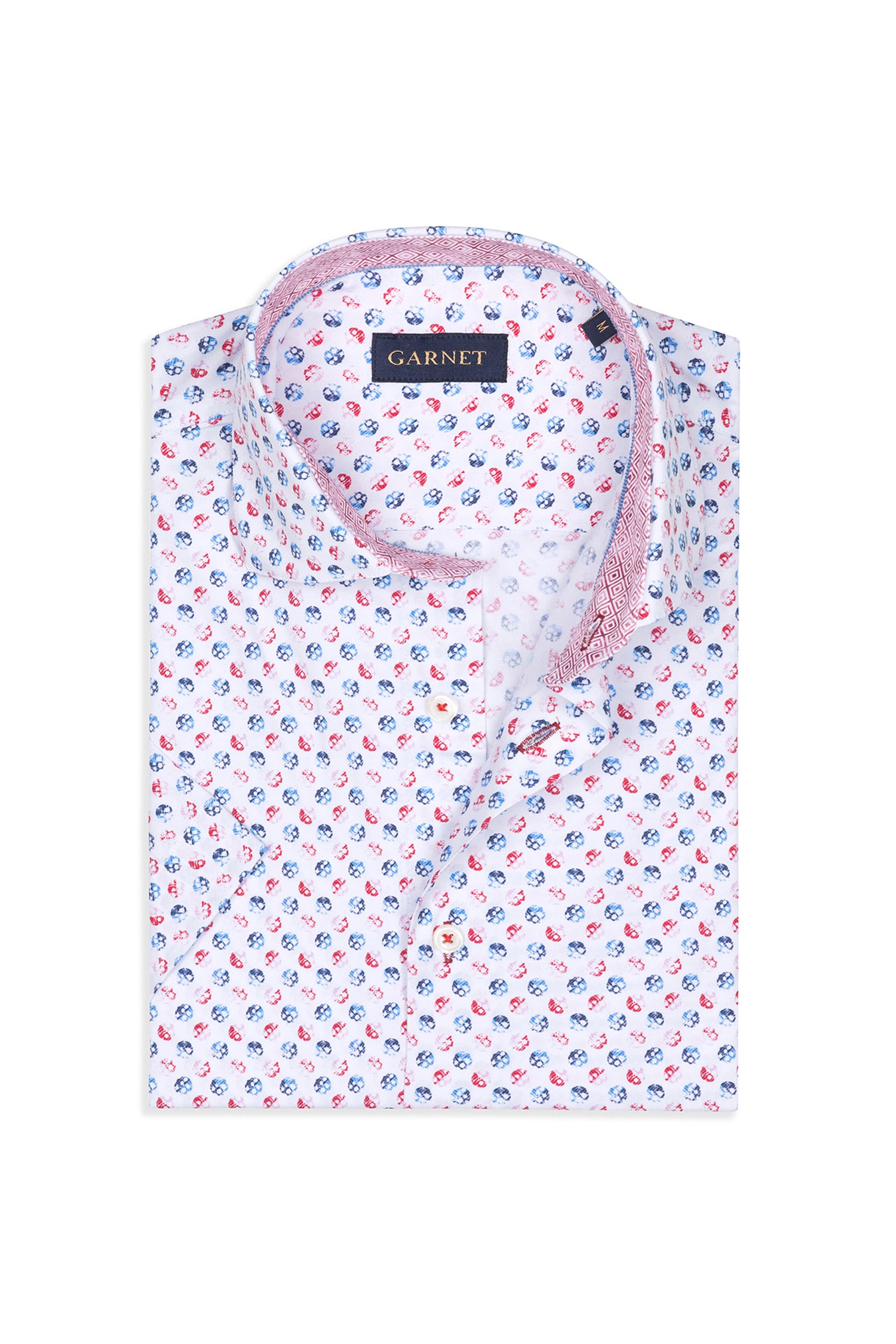 Perfect for the discerning customer who values both style and comfort, our Red Blue Stretch Short Sleeve Shirt features a sophisticated abstract print on high-quality, breathable fabric. With front button fastenings and a blend of 97% cotton and 3% elastane, this shirt effortlessly combines luxury and practicality. Easy-care instructions make it a must-have for any fashion-forward wardrobe.