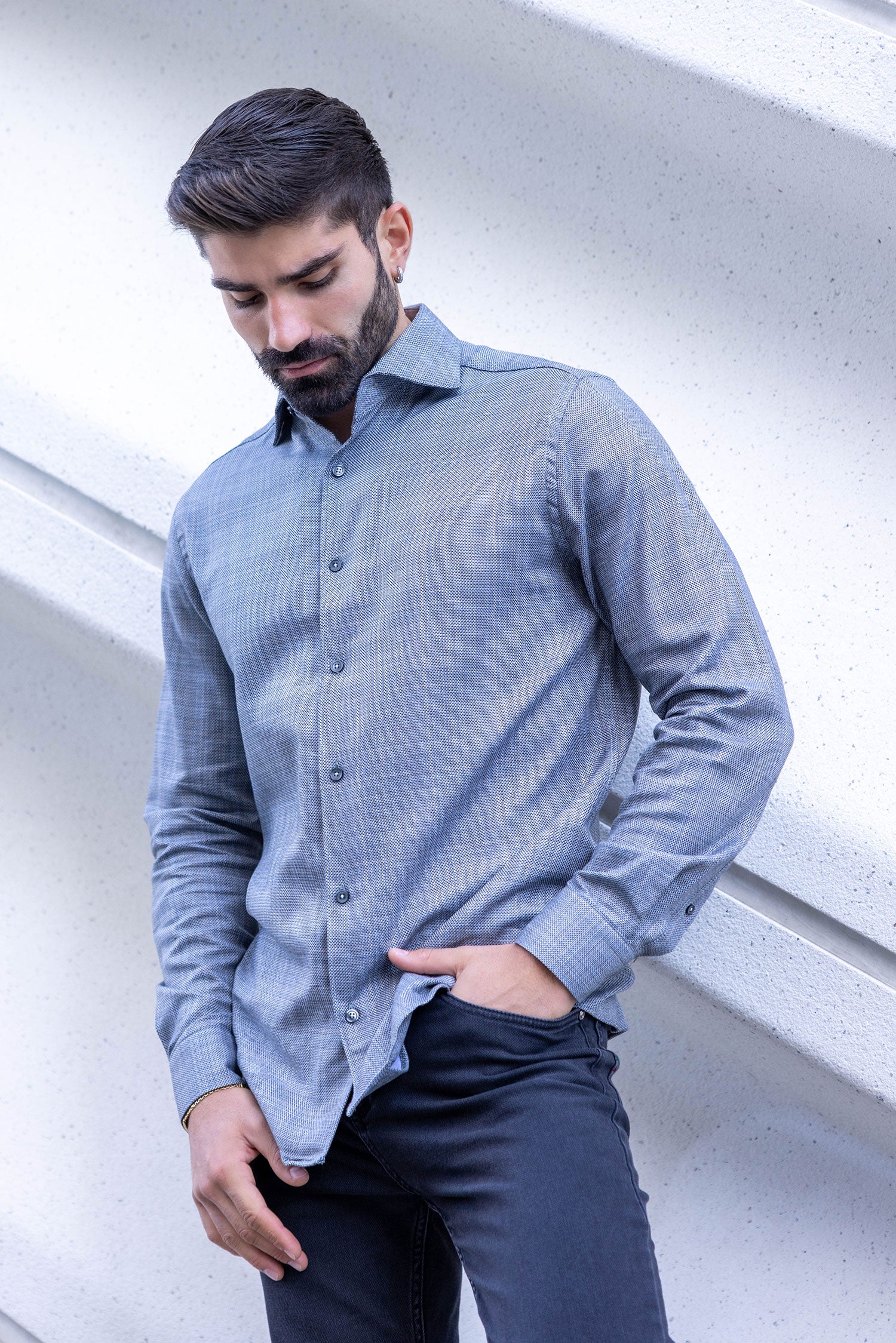 Experience unmatched comfort and style with our super fine cotton Roll-Up collar Shirt. Crafted from premium, ultra-soft cotton fabric, this shirt delivers a luxurious feel while ensuring breathability and durability. The roll-up collar adds a touch of casual elegance, making it a versatile choice for both formal and laid-back occasions.