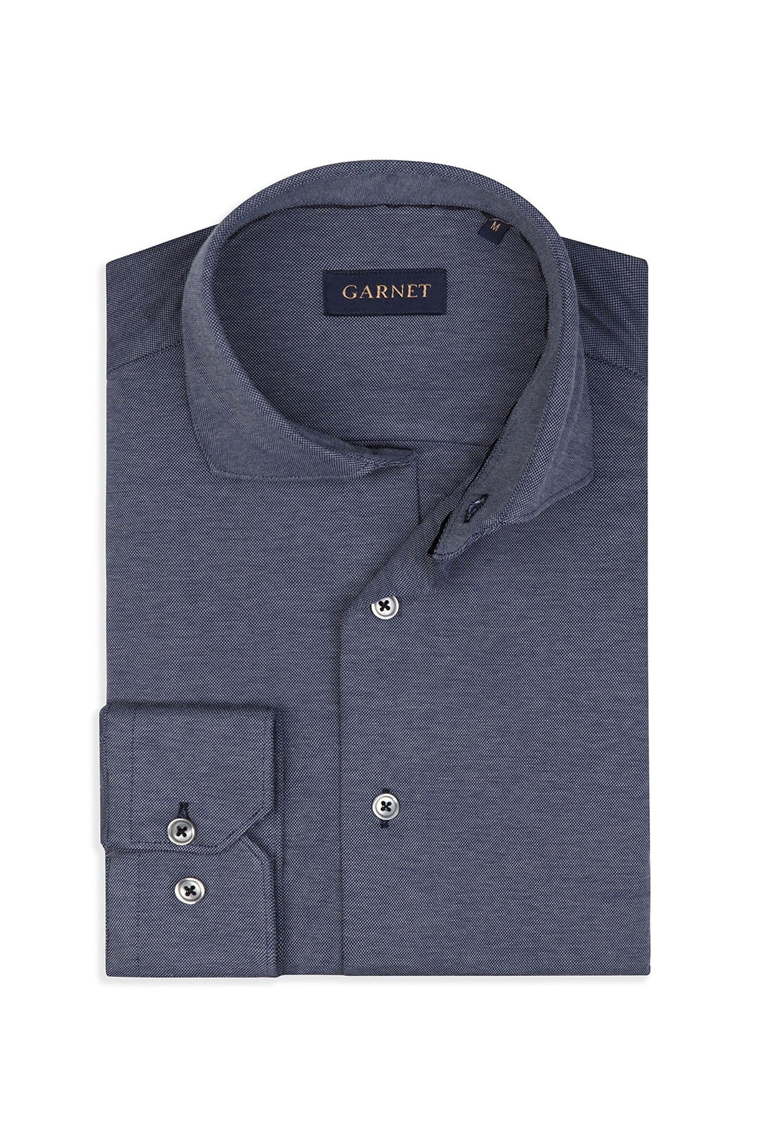 Solid B-Tech Italian collar jersey long sleeve shirt in long-sleeved shirt in solid color with Italian collar, French placket, adjustable notched cuffs and curved hem. B-Tech is a wrinkle free, 8-way stretch, breathability, easy-care, quick dry and thermal comfort features.