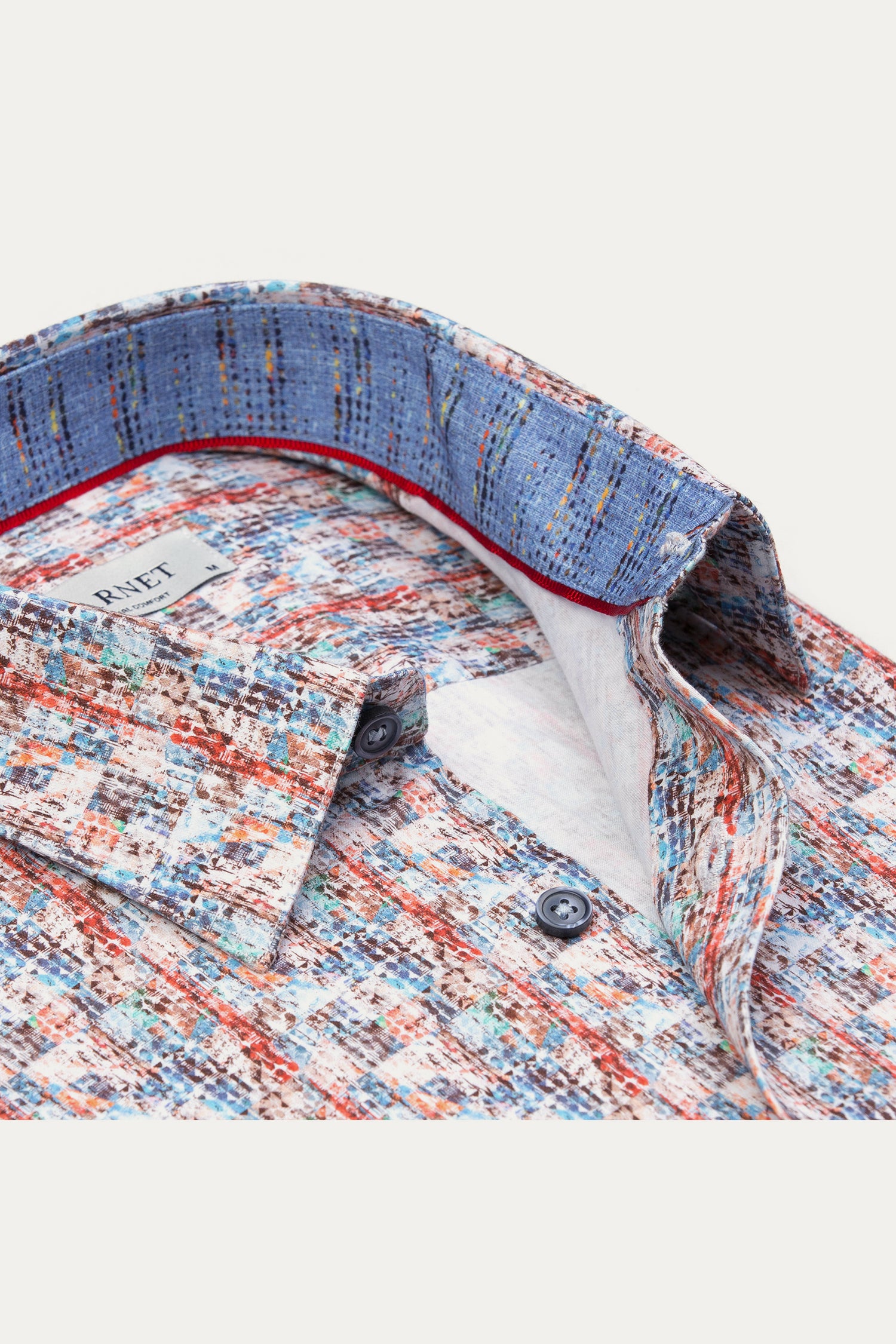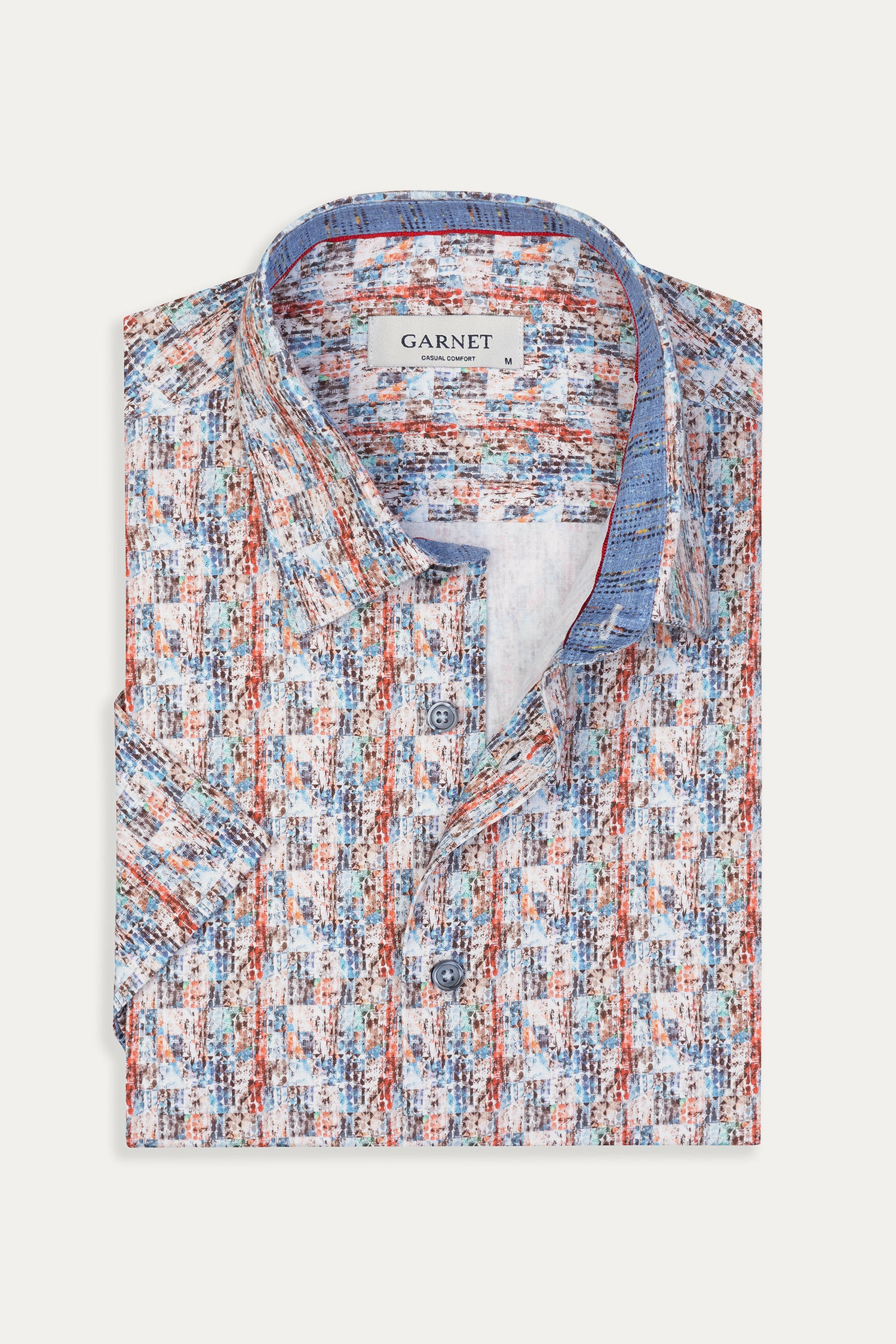 A modern take on classic patterns, the Textured Mosaic Shirt blends intricate detailing with a rich color palette for a striking yet versatile look. Crafted from a soft cotton-stretch blend, it ensures comfort while maintaining a refined silhouette.