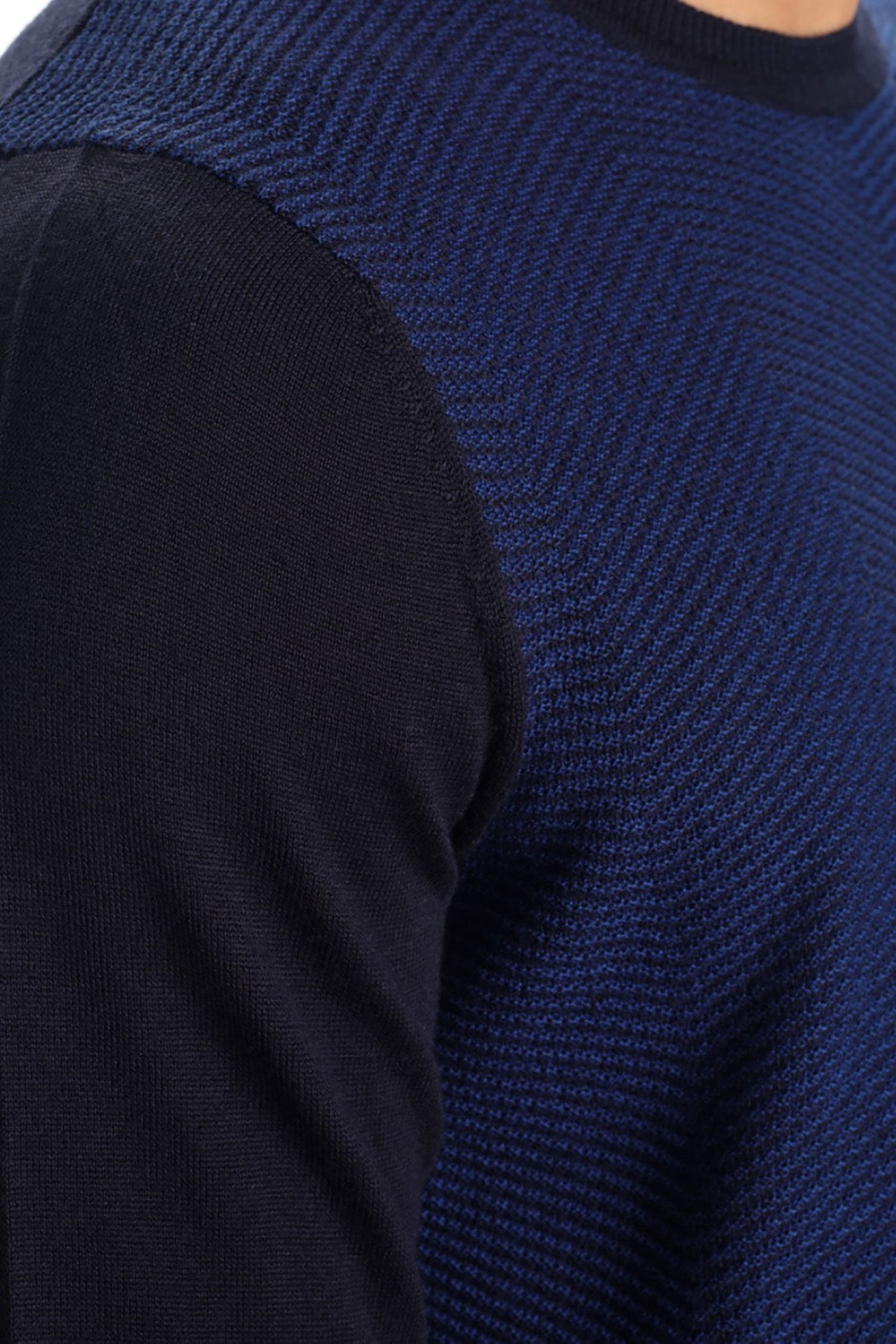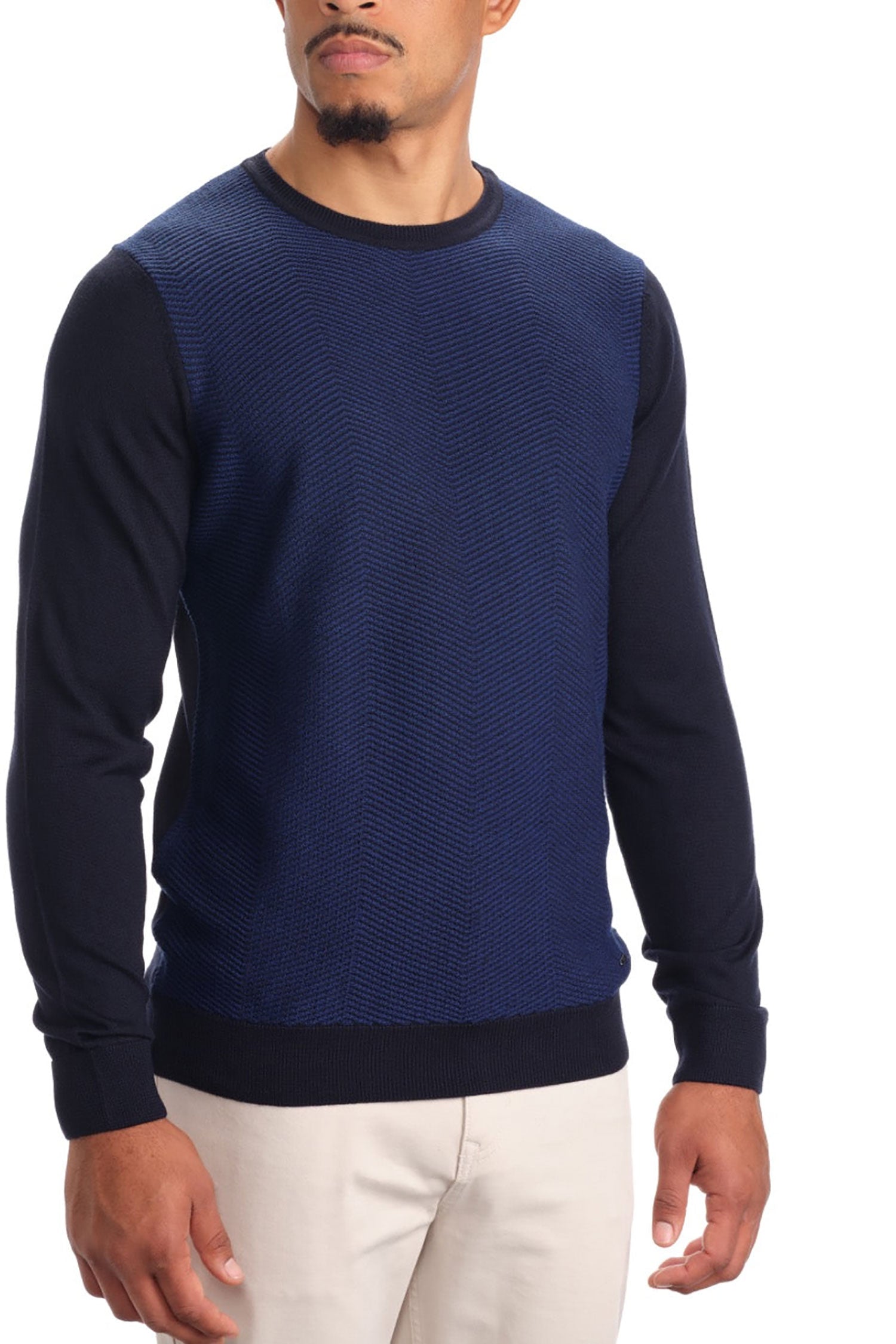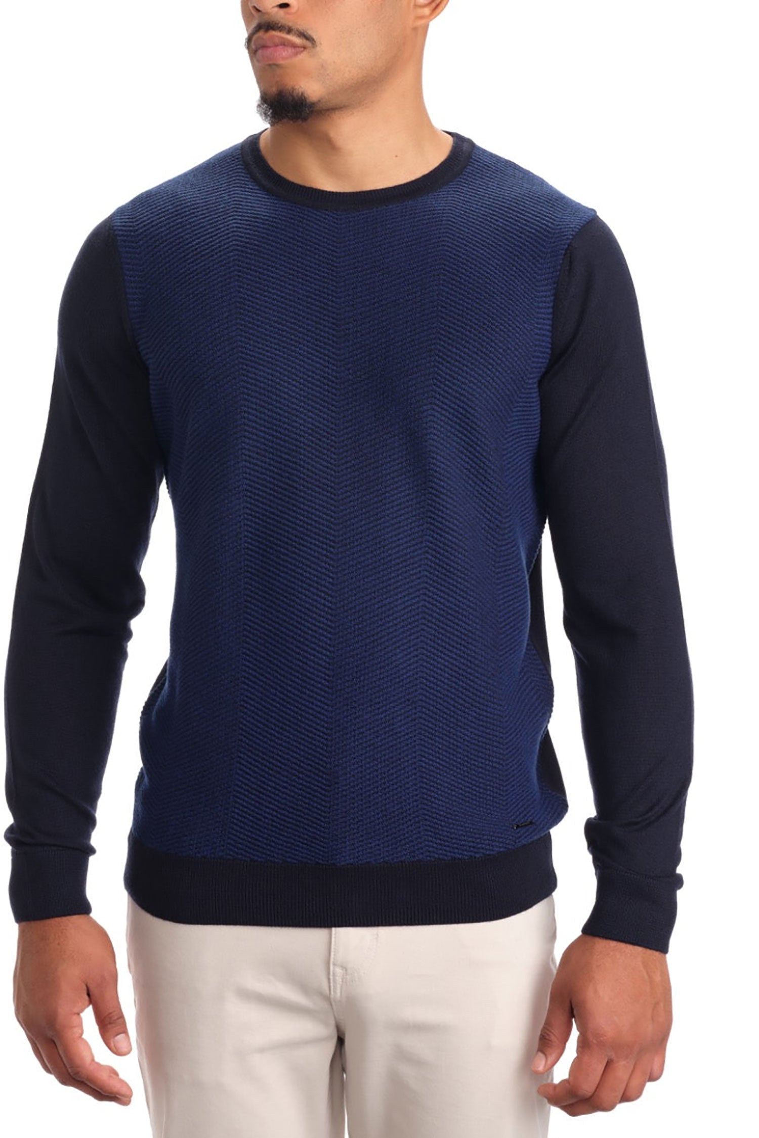 Indulge in luxury with this Garnet brand men's long sleeve sweater, crafted from 100% Merino wool. The textured knit is durable and breathable, while the crew neck and two tone design add a touch of sophistication. Easy-care and machine washable for your convenience.